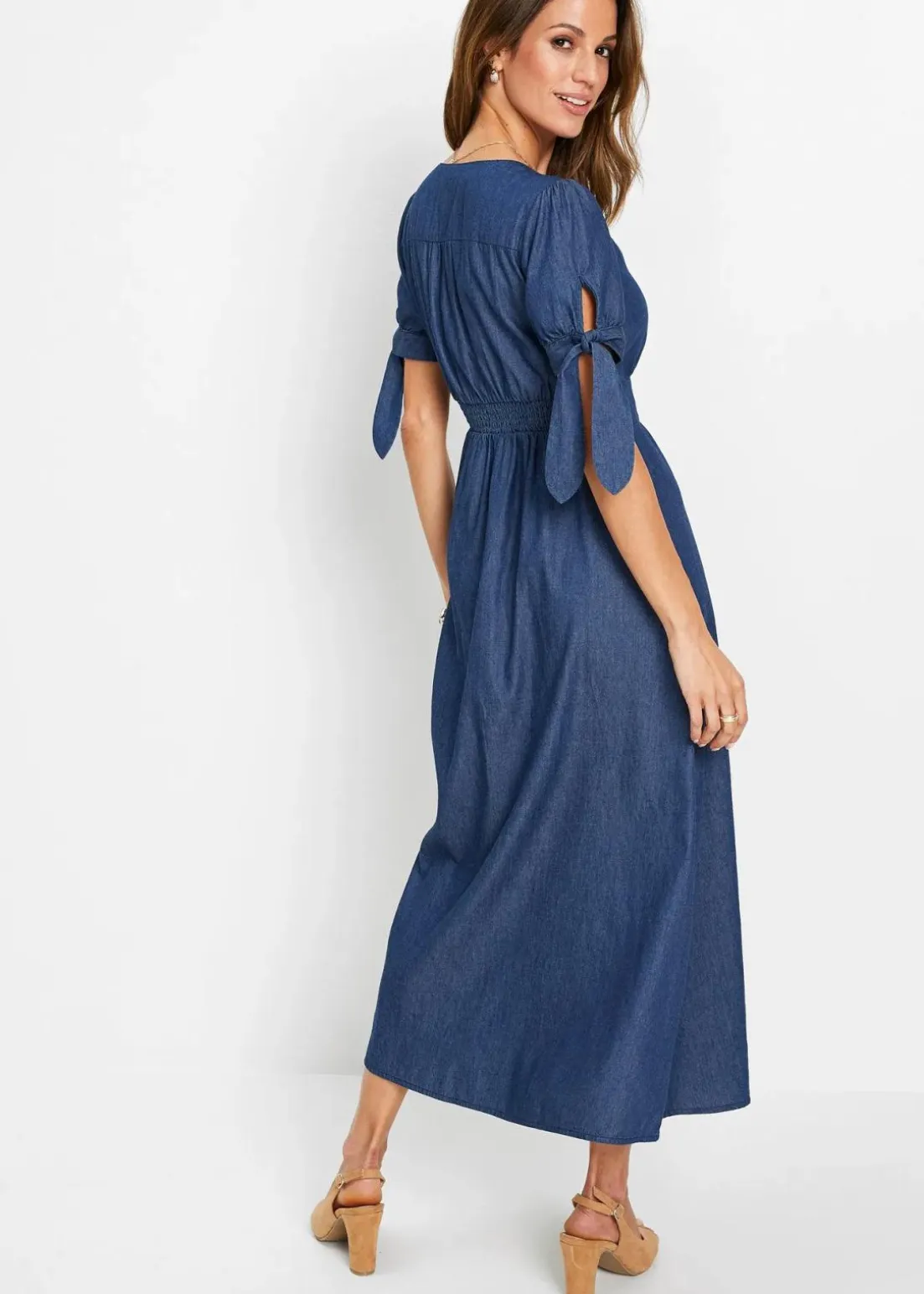 Sommerliches Jeanskleid mit Knoten an den Ärmeln