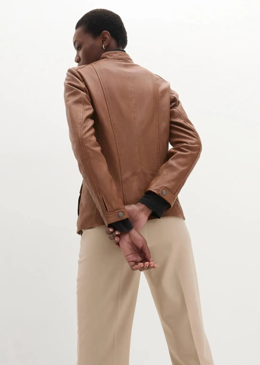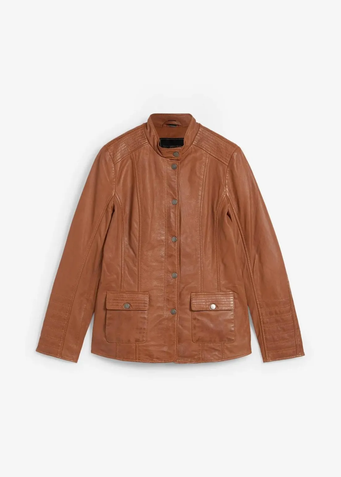 Klassische Lederjacke mit Stehkragen und aufwändigen Details
