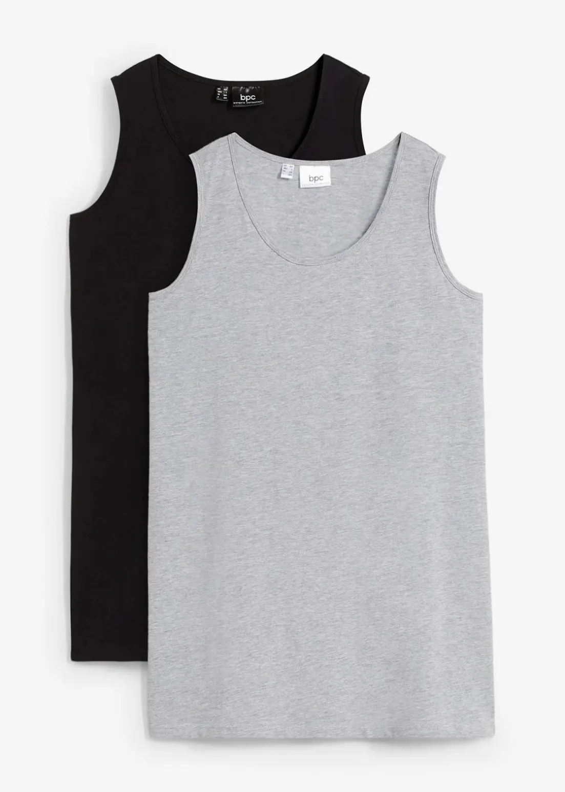 Basic-Top mit Rundhals-Ausschnitt im Doppelpack aus Baumwoll-Stretch-Qualität