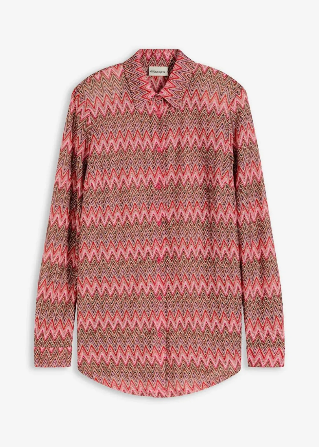 modische locker geschnittene Longbluse aus Jersey in Häkel-Optik