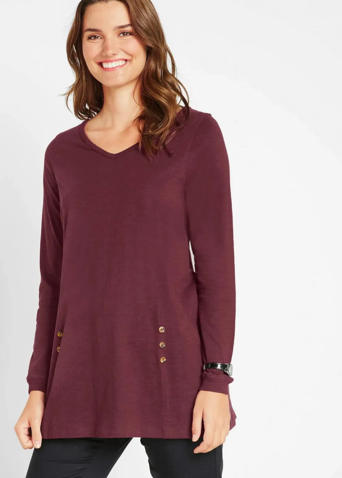 Figurschmeichelndes Longshirt in A-Linie mit dekorativen Knöpfen