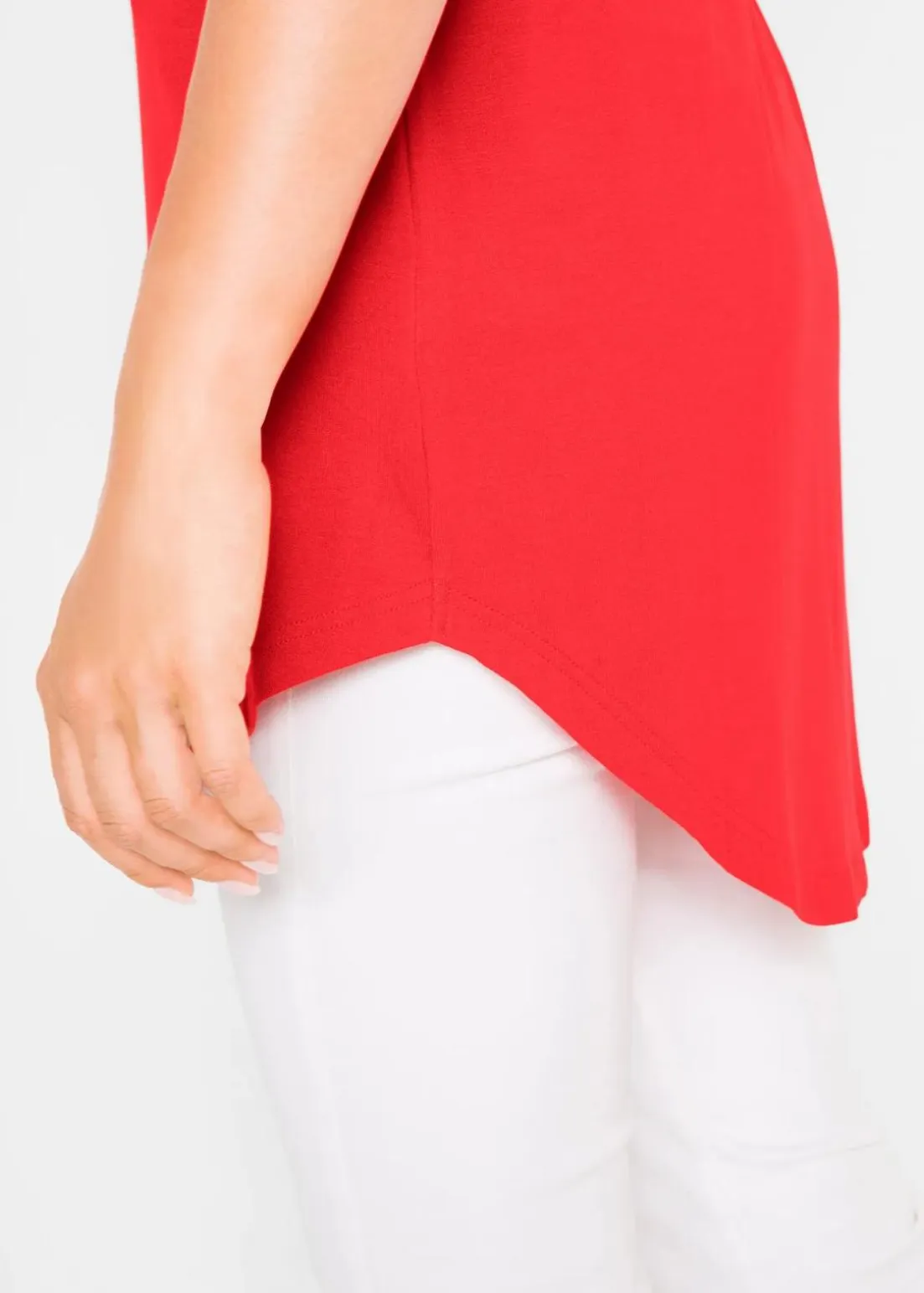 Super bequem und vielseitig kombinierbar ist dieses modische Longshirt mit kurzen Ärmeln und rundem Ausschnitt. Der praktische Allrounder in angenehmer Materialqualität punktet mit einem abgerundeten Saum, der hinten etwas länger ausfällt.Das tolle Shirt der Marke bpc ist figurbetont geschnitten und lässt sich gut zu Leggings, Strumpfhosen oder Skinny-Hosen kombinieren.