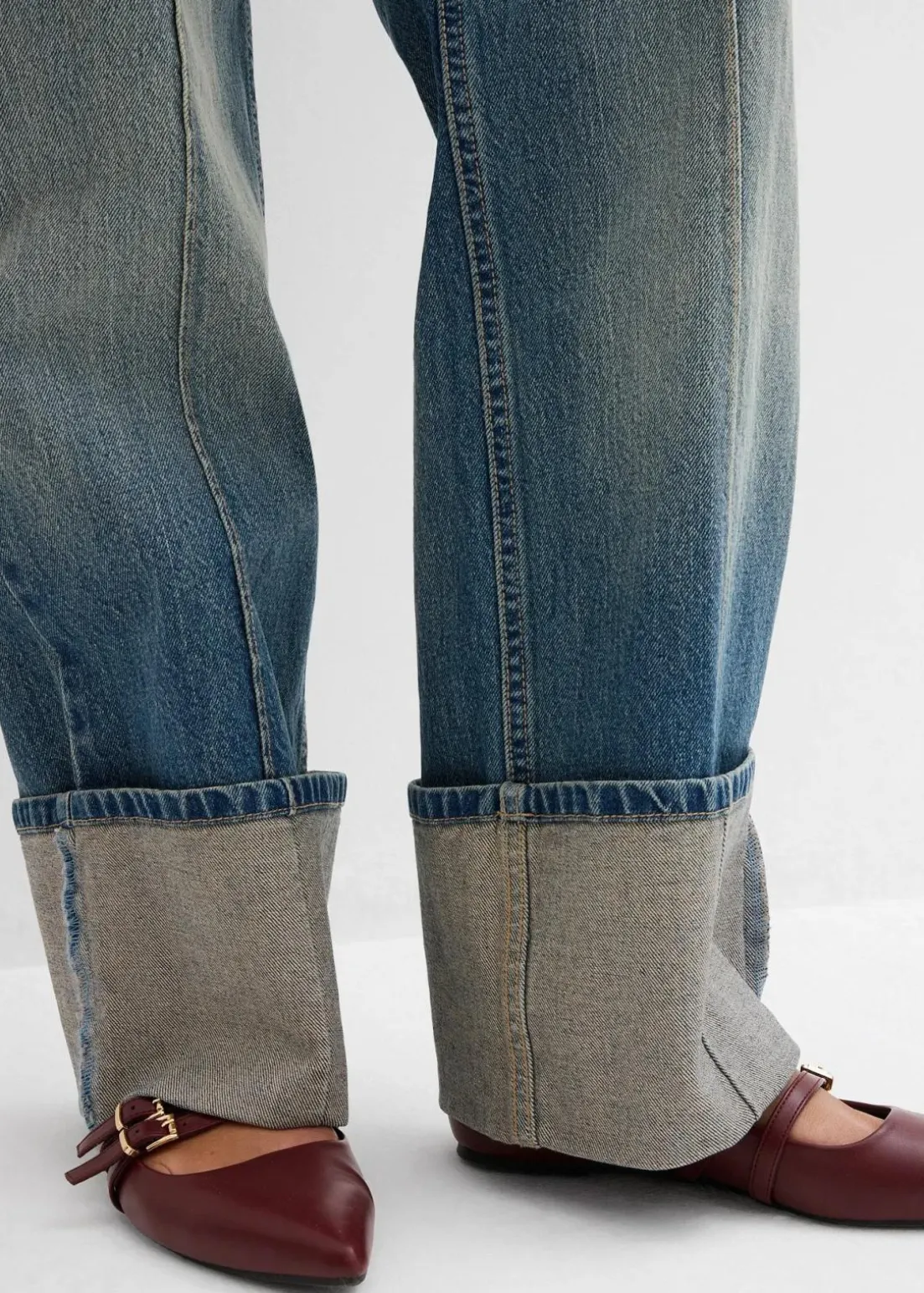 Gerade 5-Pocket-Jeans aus einem festen Baumwolldenim, der sich zunächst etwas steif anfühlt und durch häufiges Tragen weicher und lockerer wird. Hohe Bundhöhe mit Zip Fly und Knopf. Lange Länge, dass am Fuß ein leichter Satcking-Effekt entsteht. Diese Jeans hat durch das ausgewaschene Finish einen modischen Used-Effekt erhalten. Eine leichte Farbabgabe beim Tragen und in der Wäsche sind charakteristisch für diese Jeans.