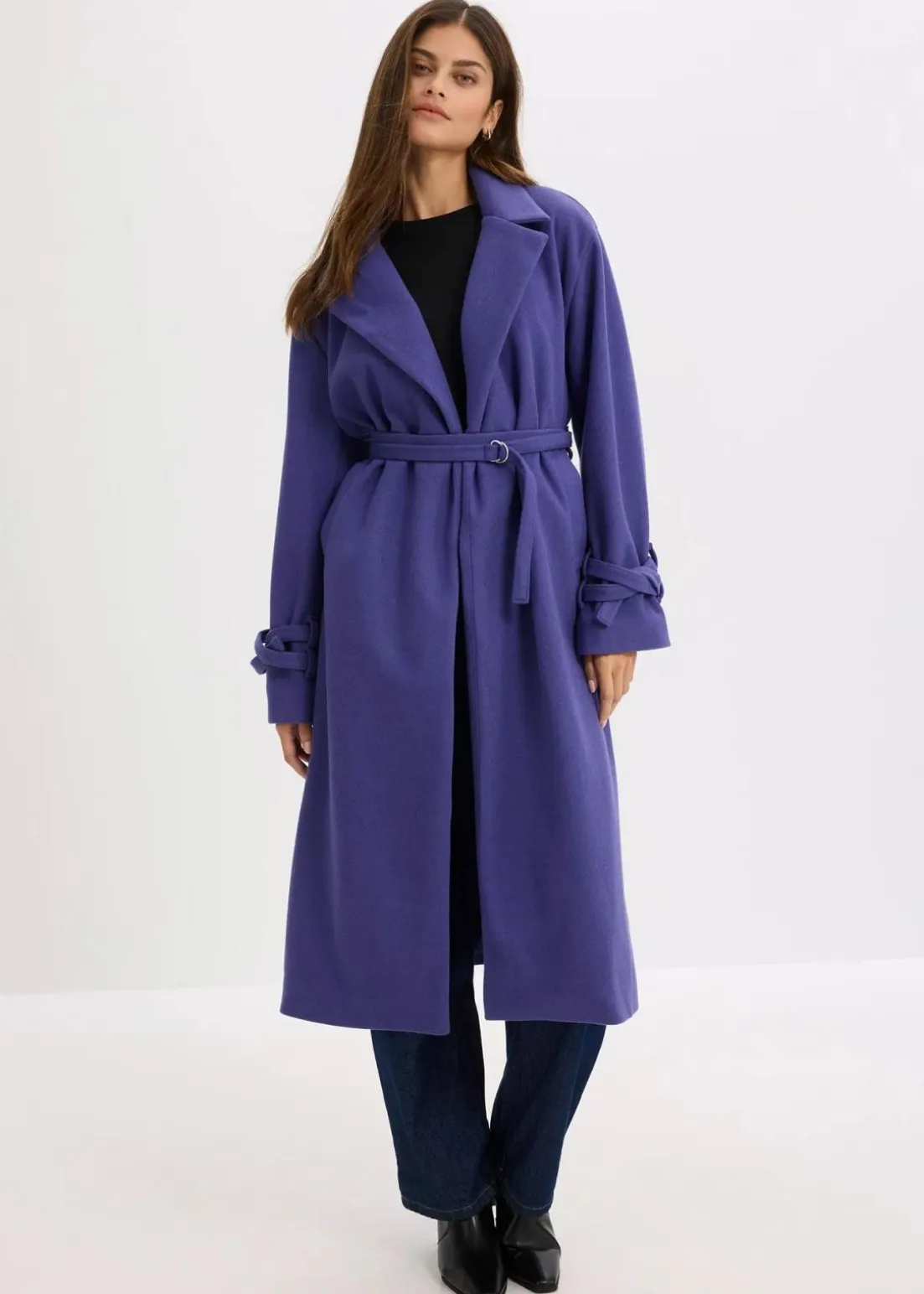 Oversized Mantel mit Bindegürtel und zweifacher Riegel an den Ärmeln