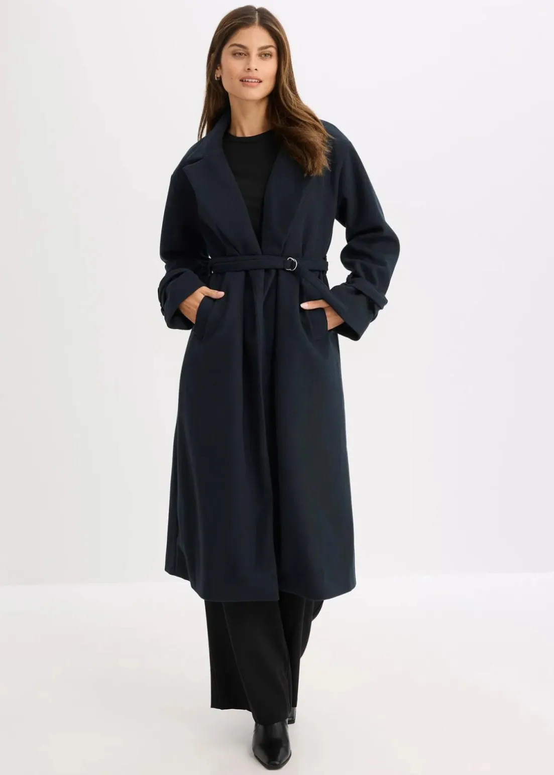 Oversized Mantel mit Bindegürtel und zweifacher Riegel an den Ärmeln