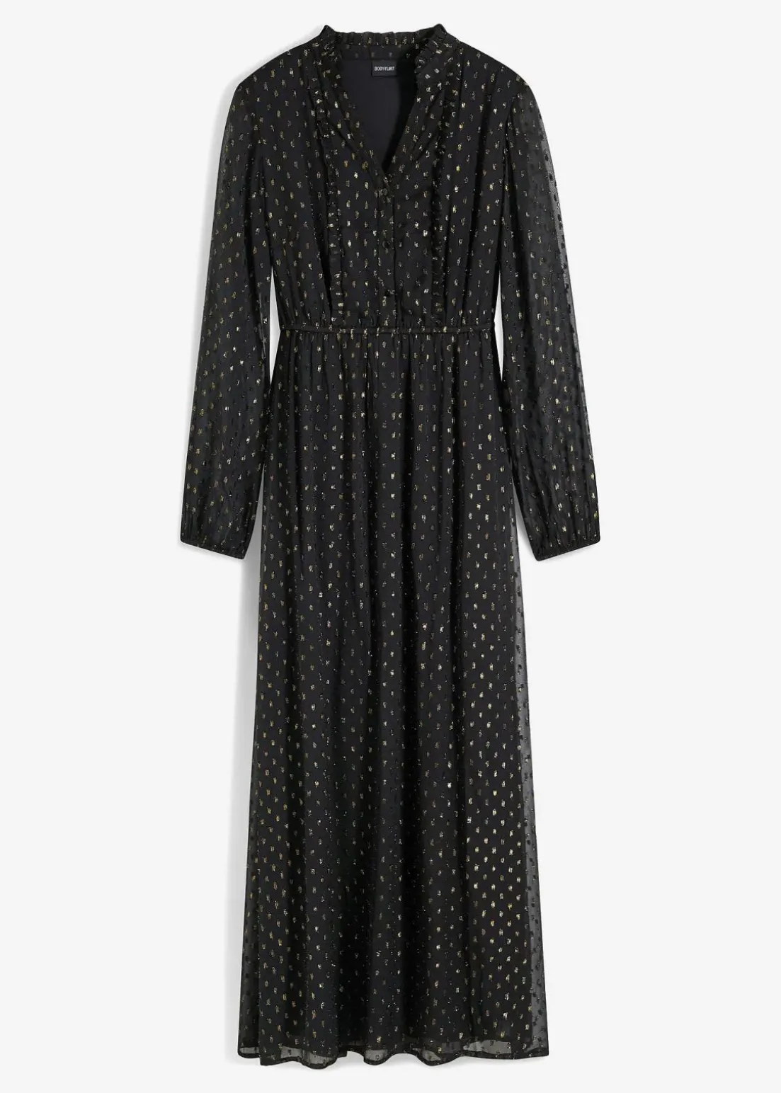 Elegantes Maxikleid mit Glitzereffekt und Knopfleiste