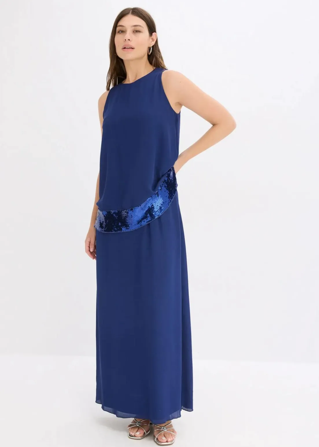 Modern und feminin: Abendkleid in Maxi-Länge mit Überwurf und Pailleten-Besatz