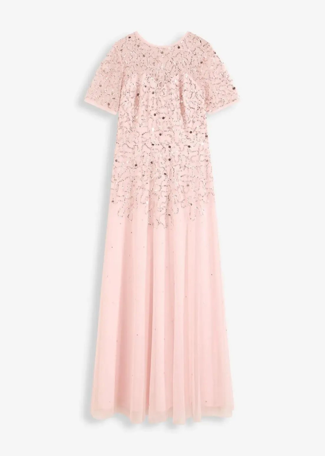 Modern und feminin: Abendkleid in Maxi-Länge aus zartem Tüll mit Paillettenstickerei