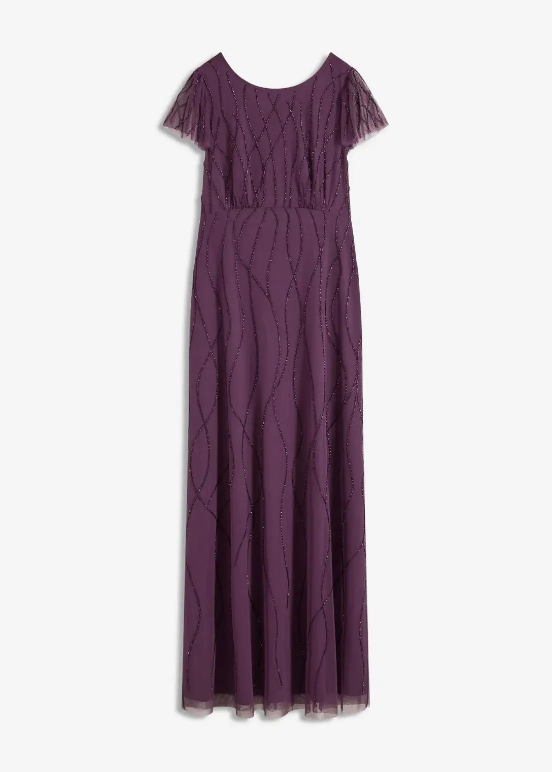 Modern und feminin: Abendkleid in Maxi-Länge aus zartem Tüll mit Perlenstickerei