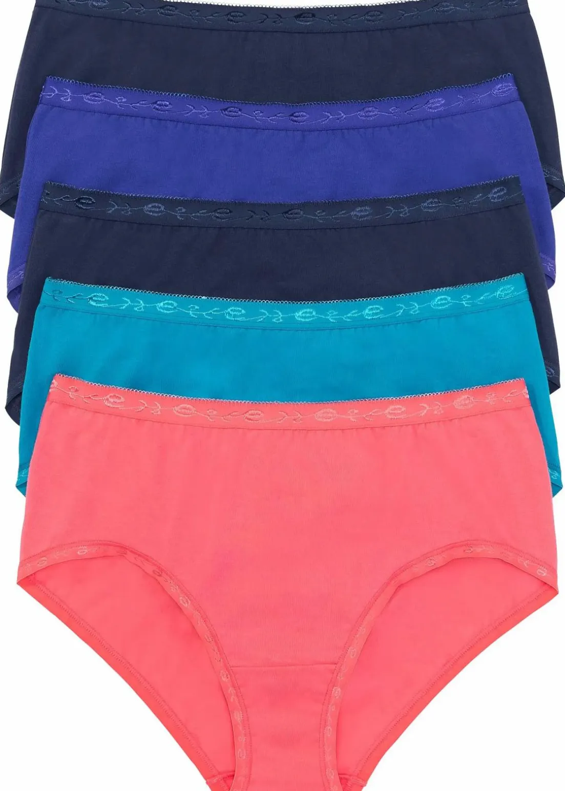 Komfort wird bei diesem Maxislip der Marke bpc groß geschrieben. Der hohe Schnitt verleiht gemeinsam mit dem weichen Material eine perfekte Passform. Modisch wirken die schmalen Verzierungen am oberen Bündchen sowie an den Beinabschlüssen. Der Zwickel besteht aus Baumwolle. Mit dem praktischen 5er-Pack erhalten Damen attraktive Slips für jeden Tag. Drei verschiedene Farbtöne befinden sich in jedem Pack.