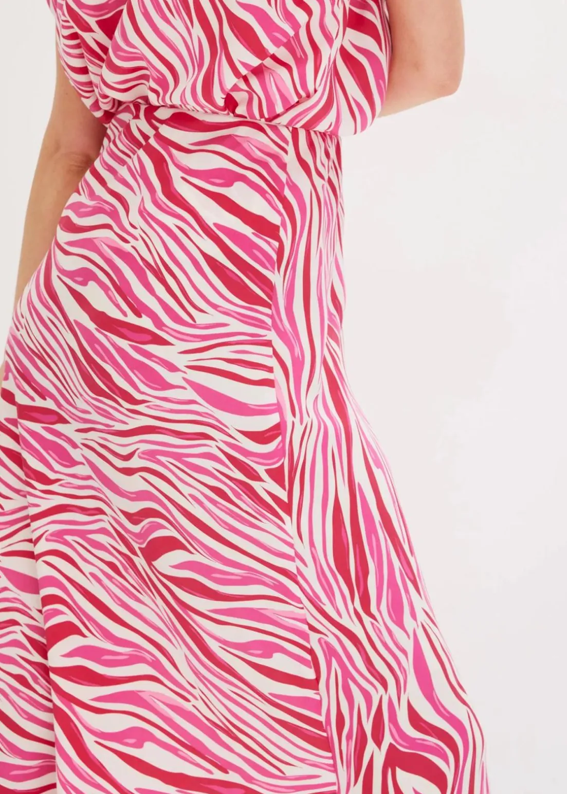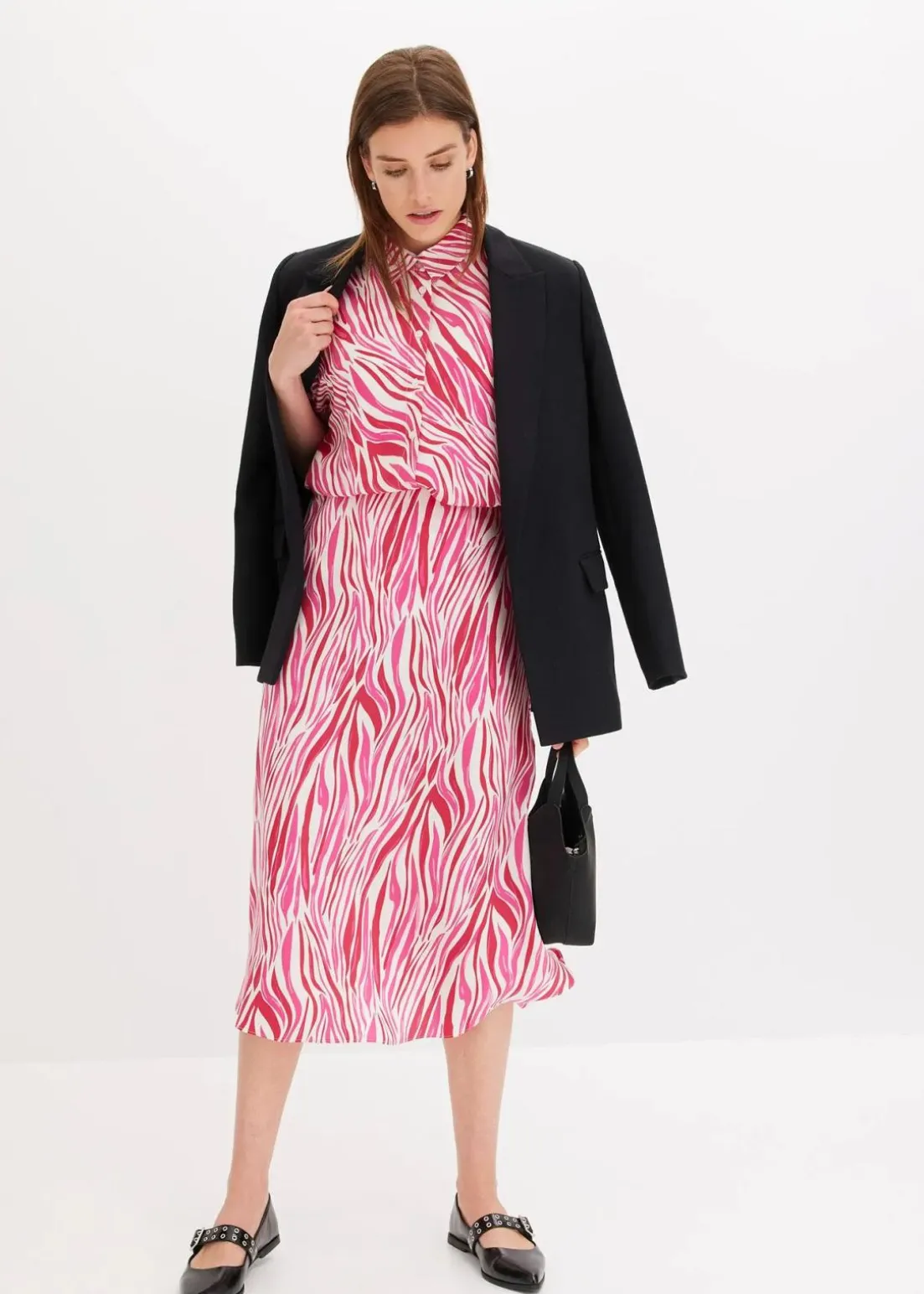 modisch bedruckter Midi-Rock aus fließendem Satin.