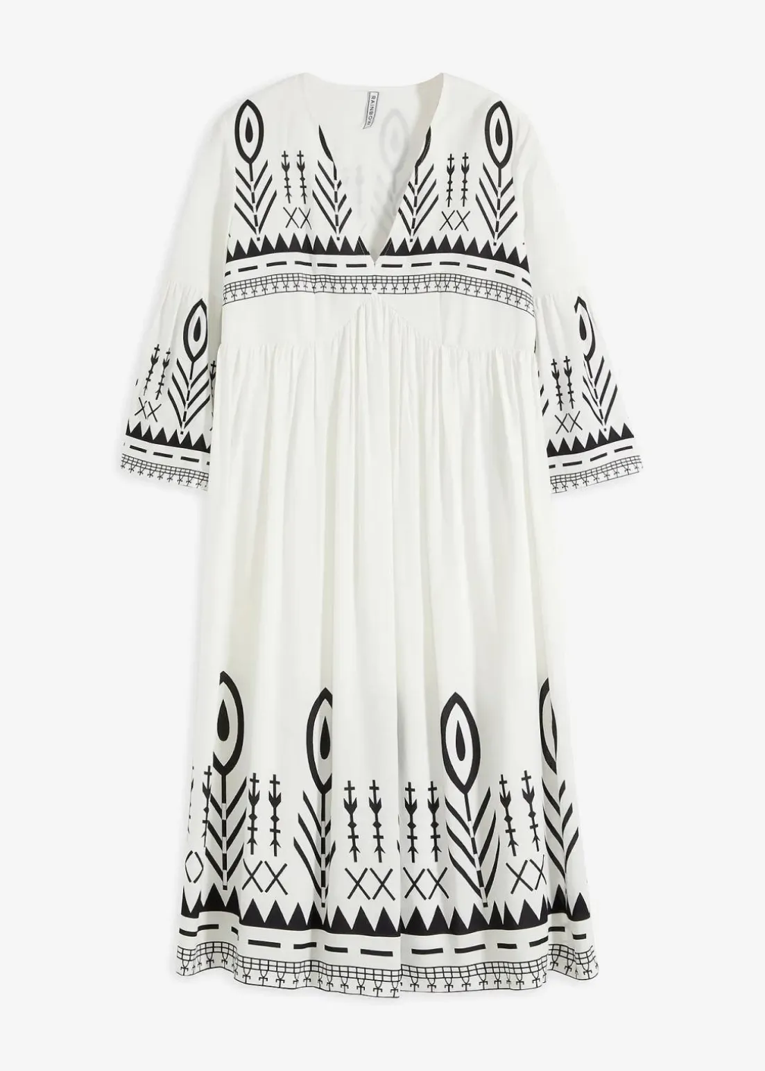 Weit schwingendes Kleid mit kontrastreichen Ikat-Druck
