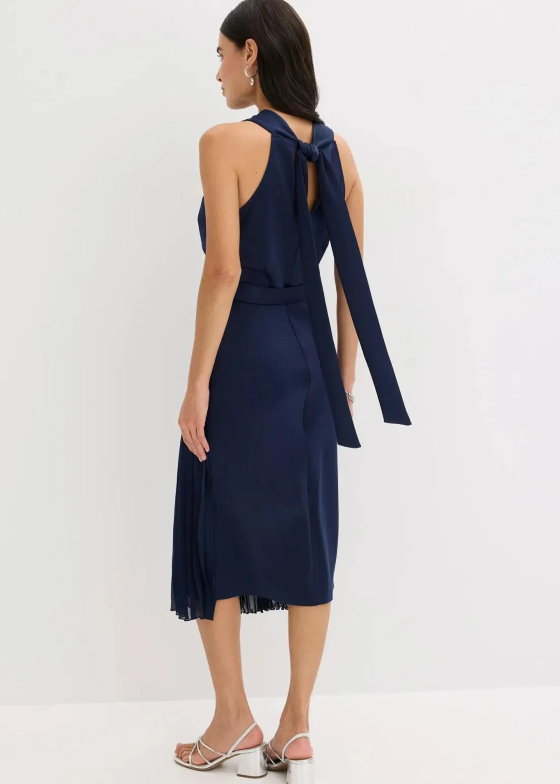 Modern und feminin: Midikleid in Wickel-Optik mit Plissee-Einsatz