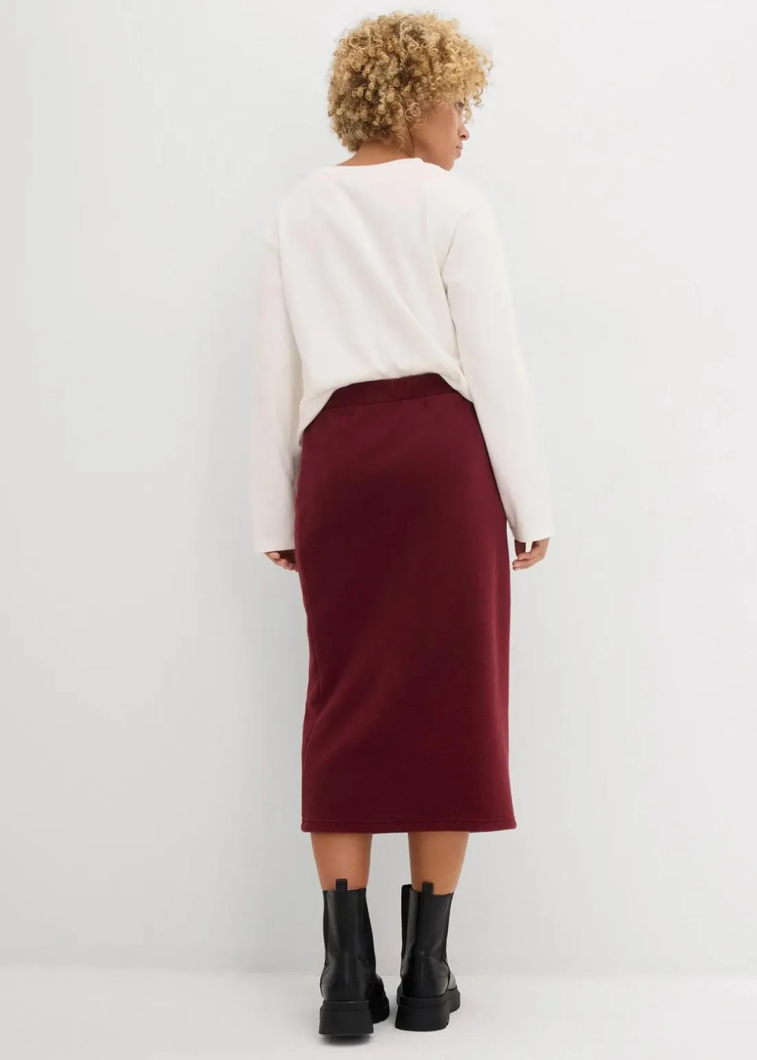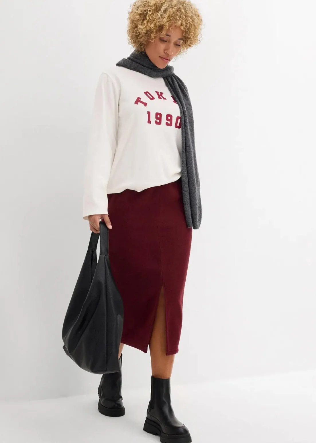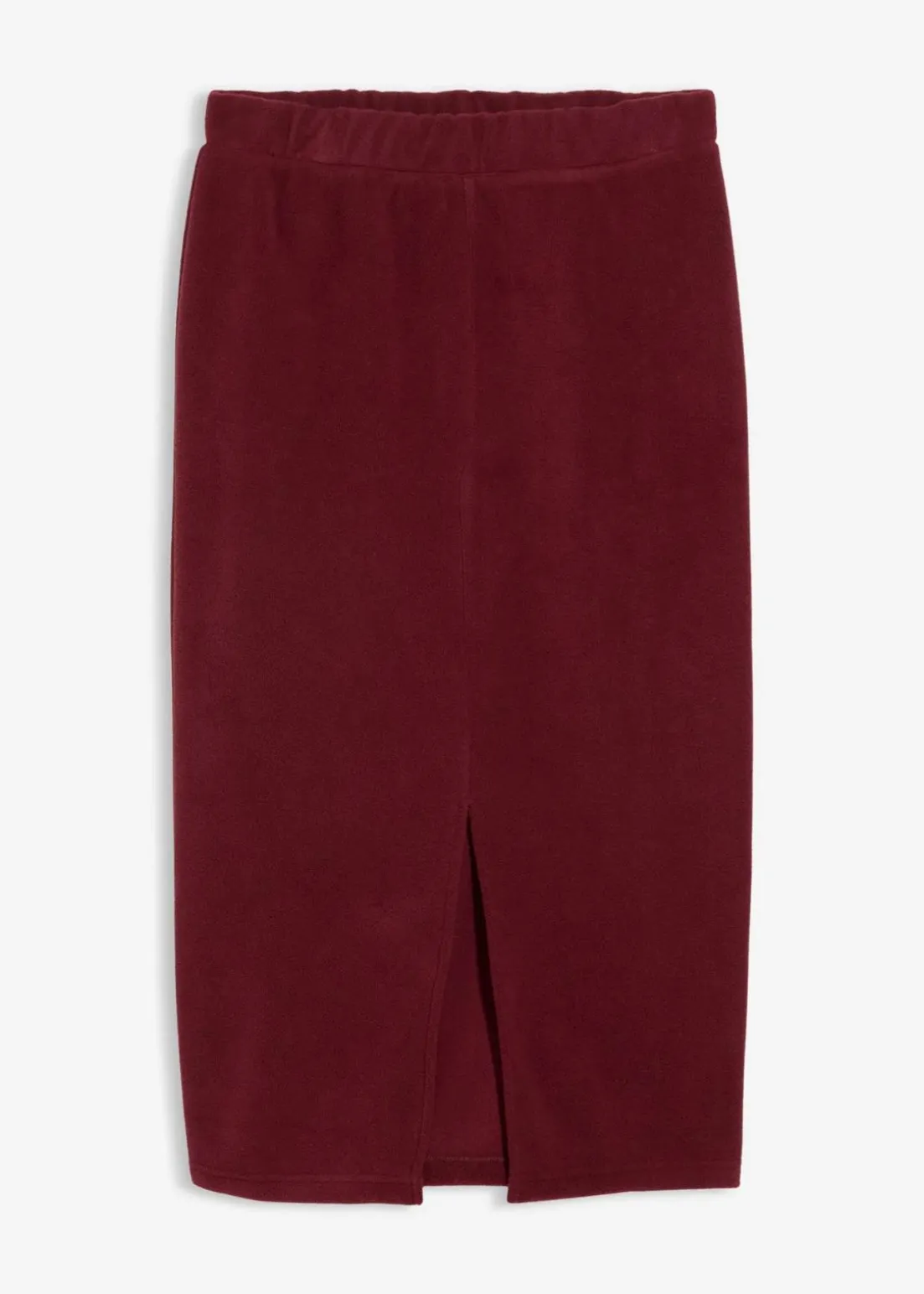 Midirock mit elastischem Bund und vorderem Beinschlitz.