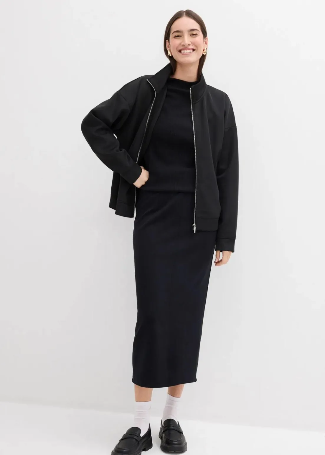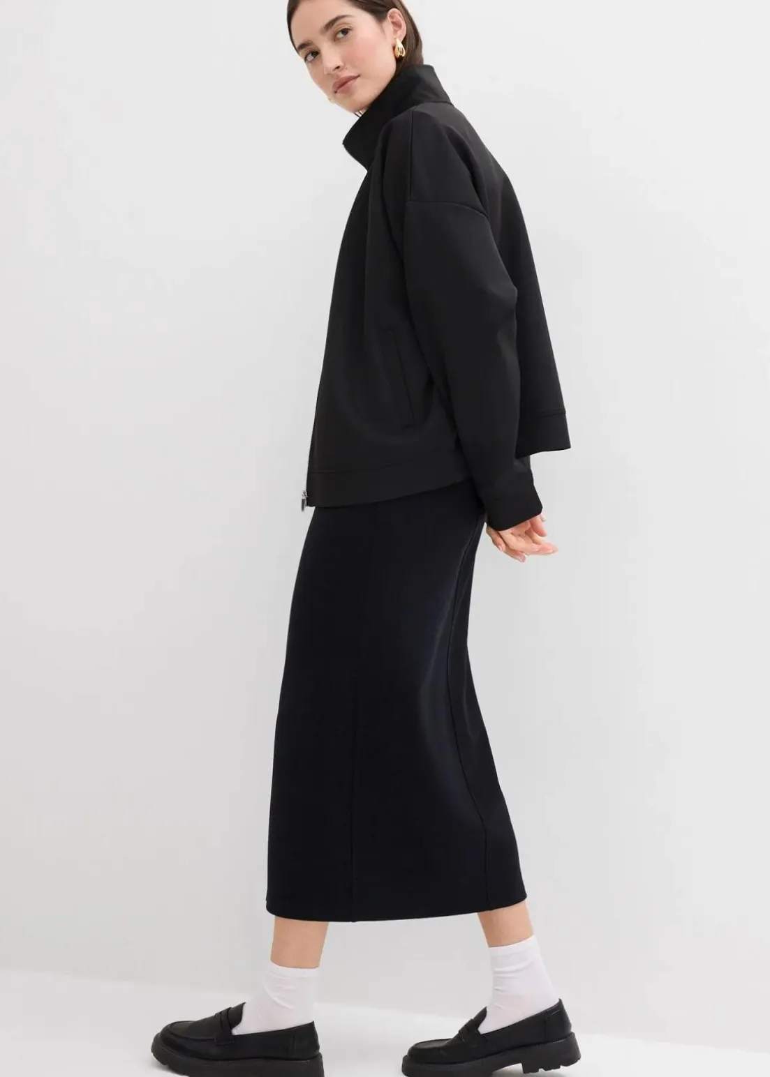 Midirock aus Scuba mit Schlitz vorne und elastischem Bund