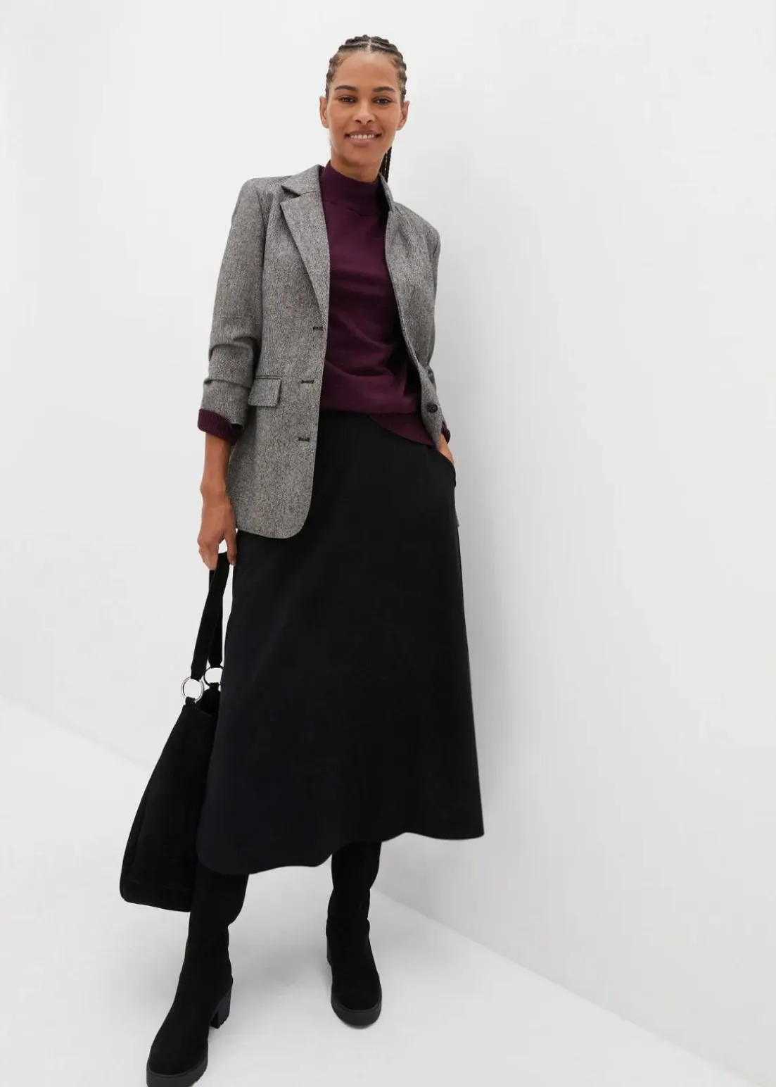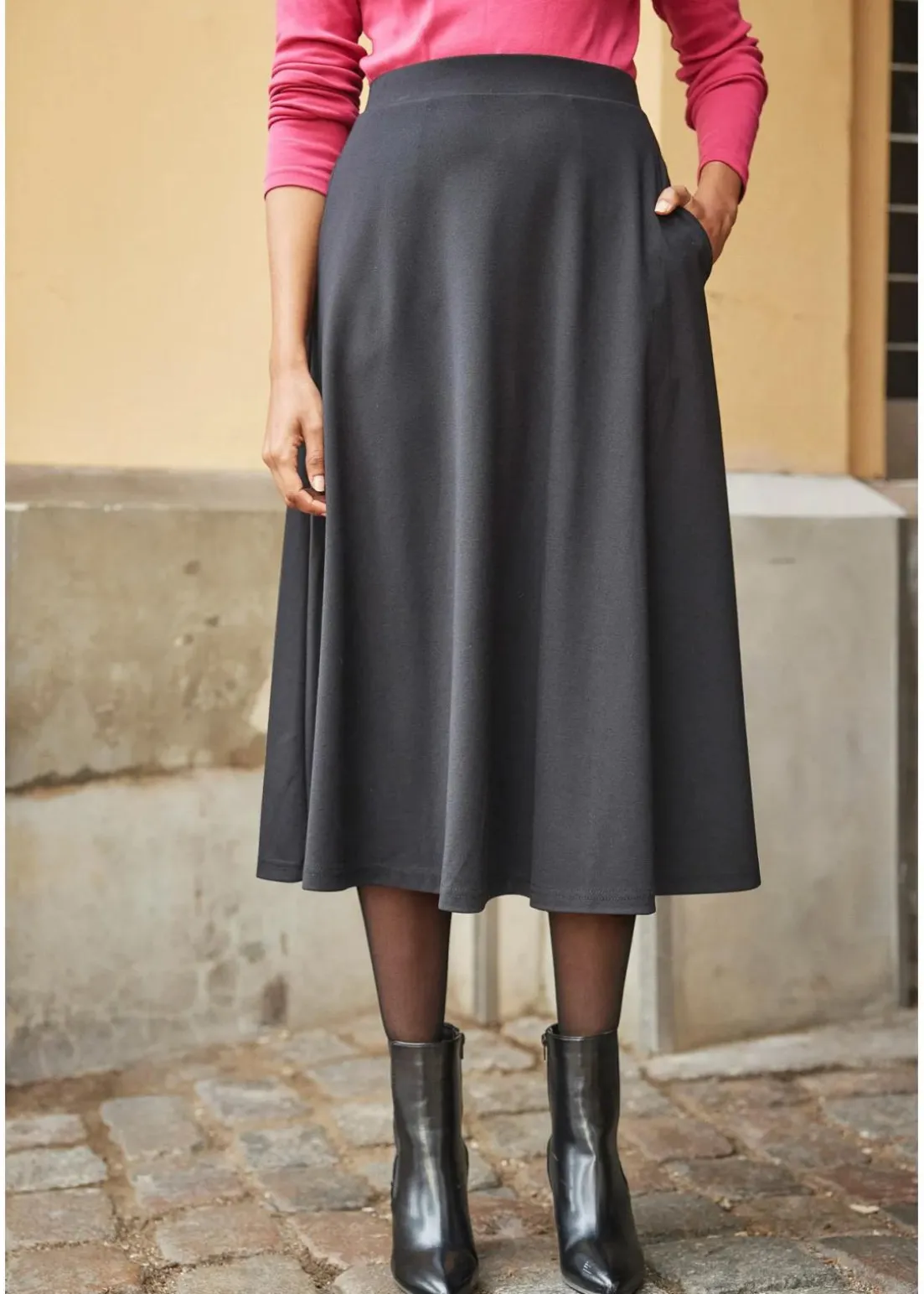 Ausgestellter Rock mit Elastikbund umspielt die Figur
