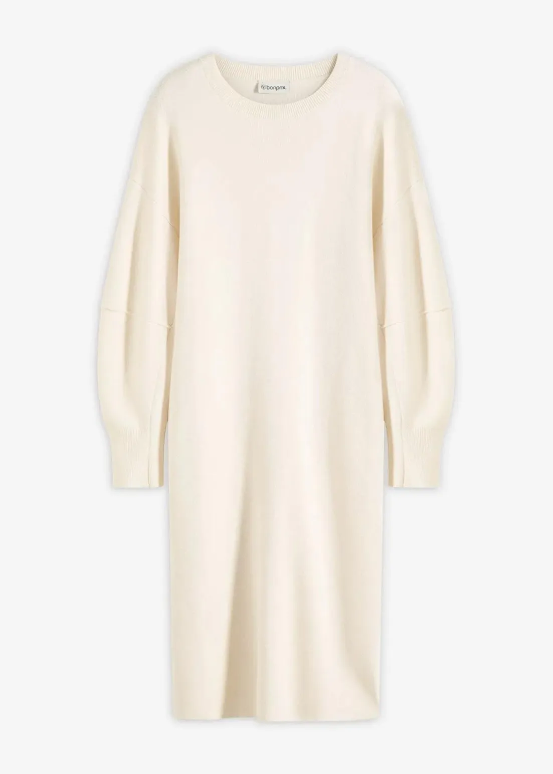 Tailliertes Midi-Strickkleid mit voluminösen Ärmeln in Regular Fit