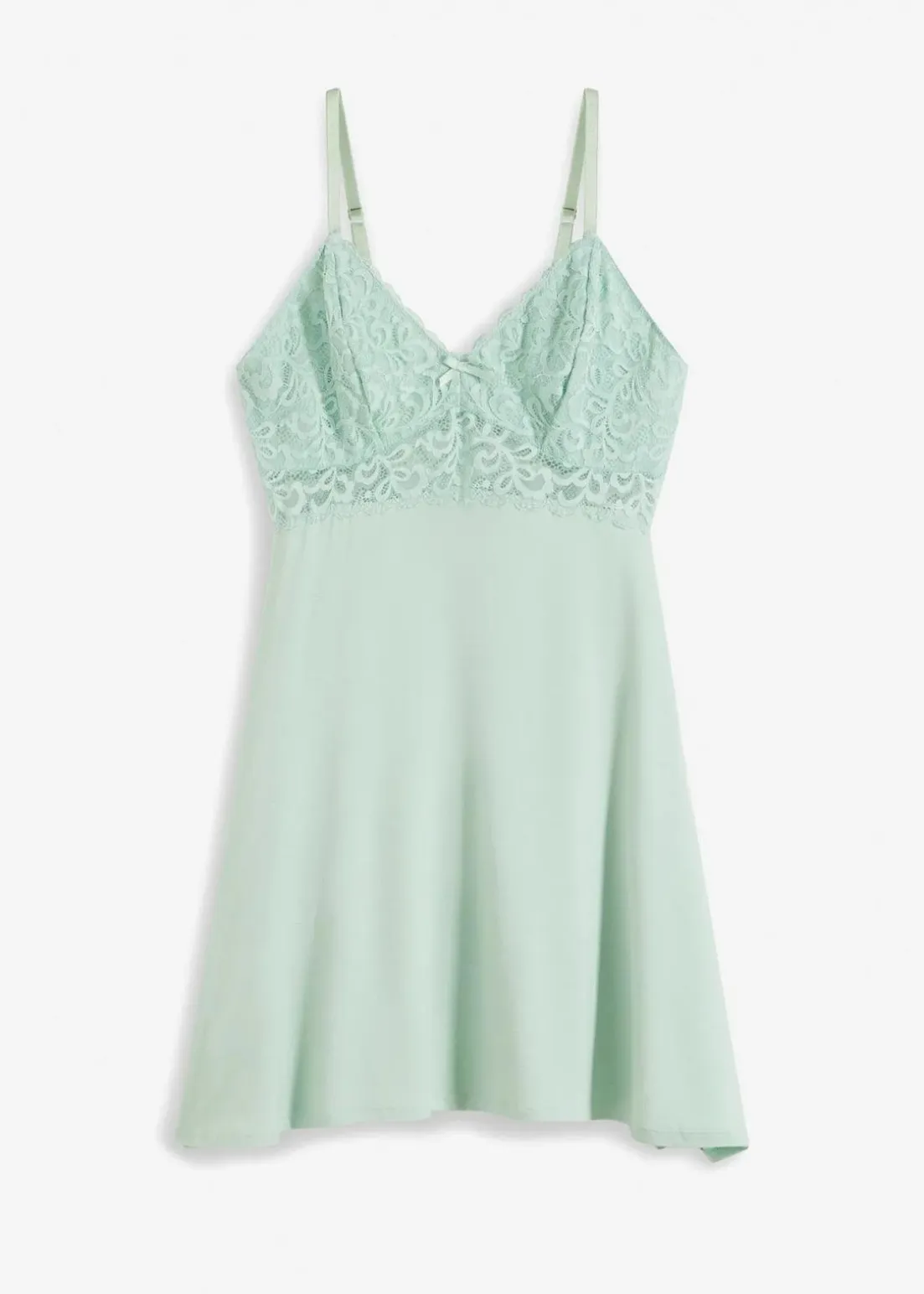 Negligé aus softem Viskose-Mix und feiner Spitze