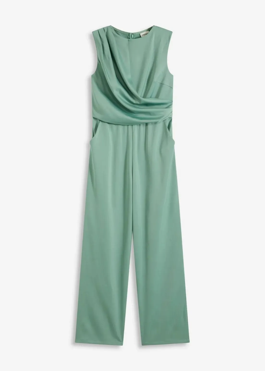 Modern und elegant: Weit geschnittener Overall aus glänzendem Satin mit Drapierung im Oberteil