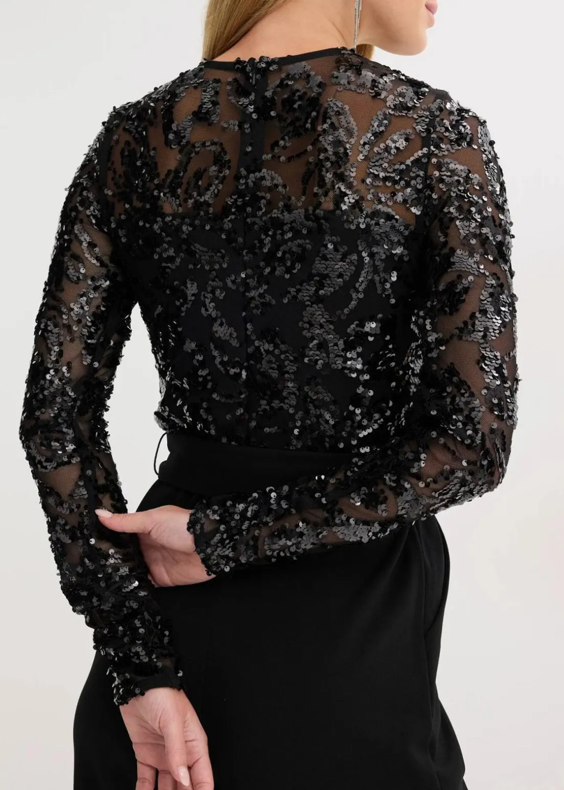 Modern und feminin: Overall mit Paillettenstickerei und Binde-Detail in der Taille