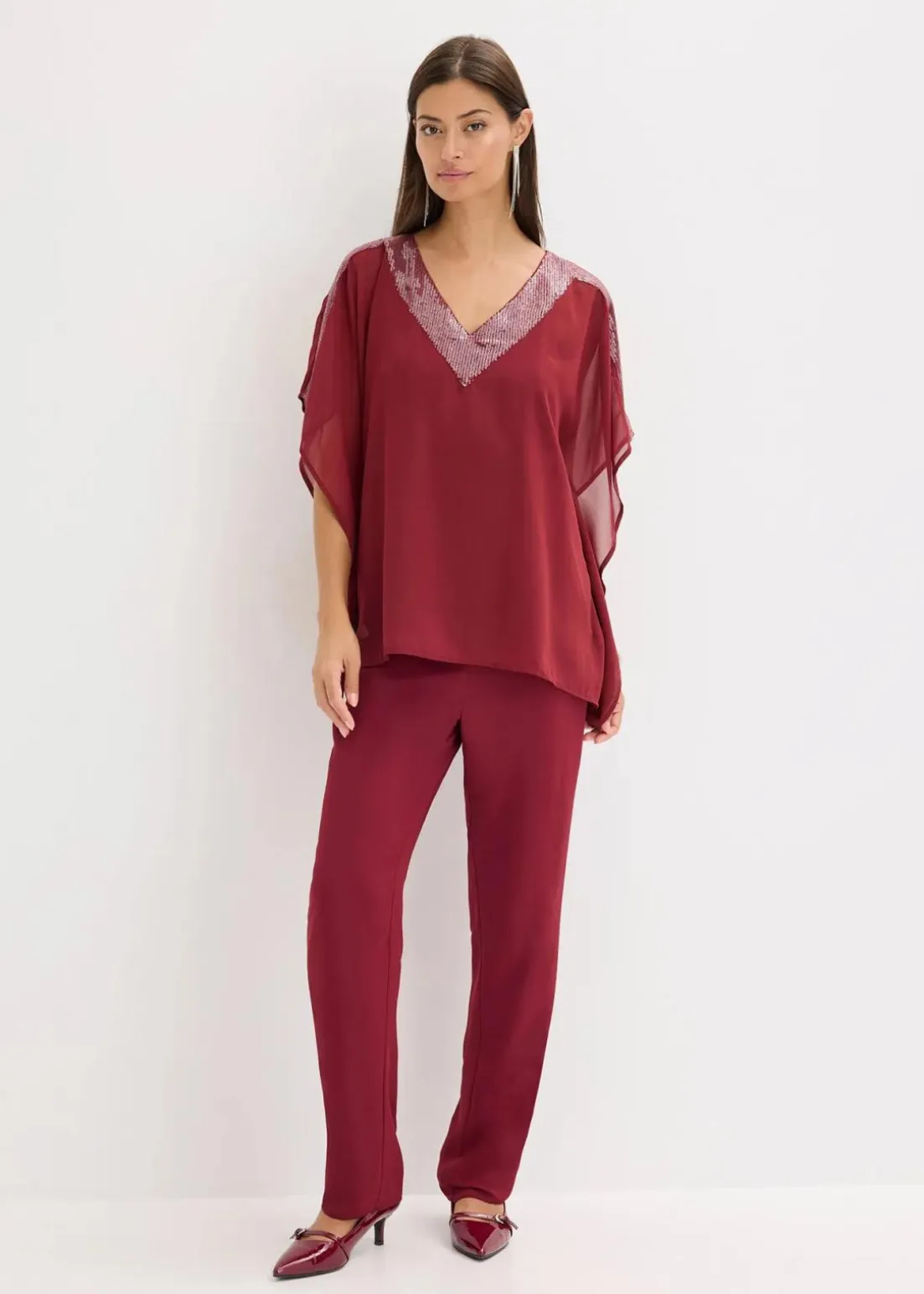 Oversize-Bluse aus feinem Chiffon mit Pailletten-Einsatz