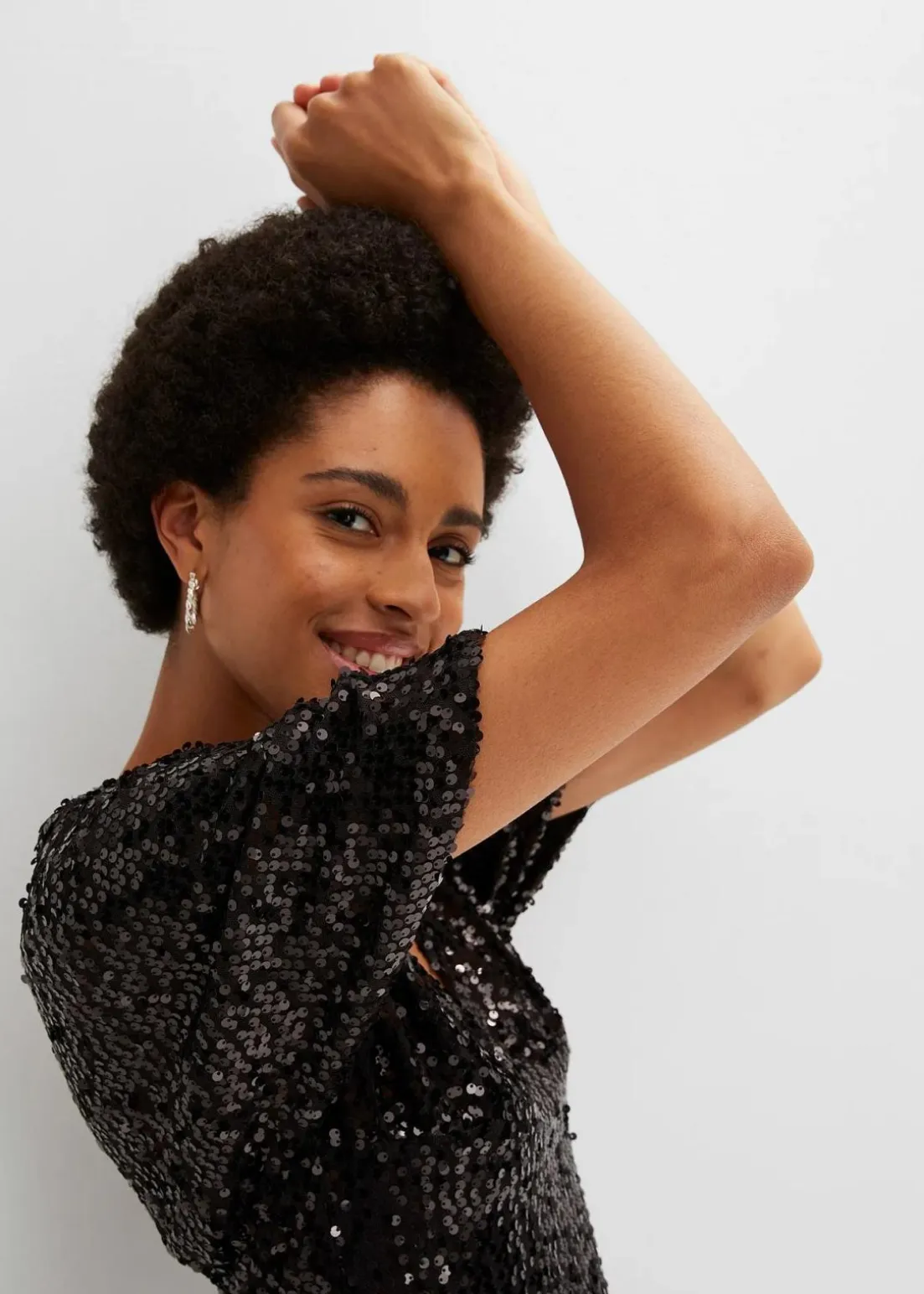 Modern und feminin: Partykleid mit Pailletten und Kimono-Ärmel.