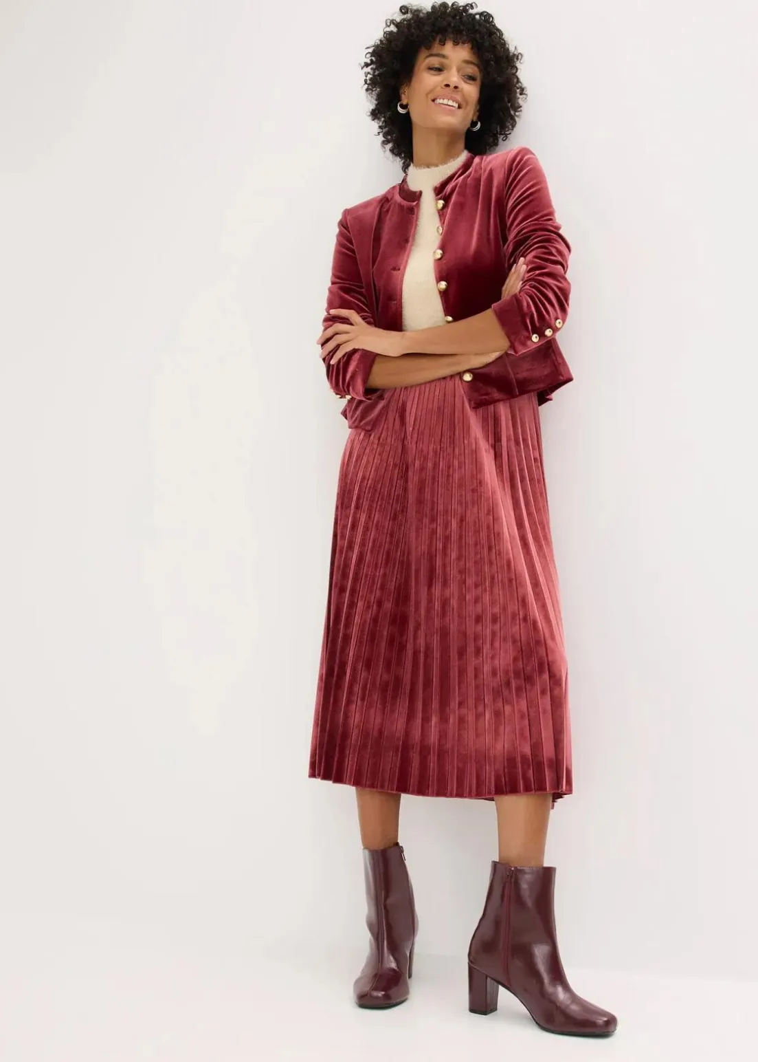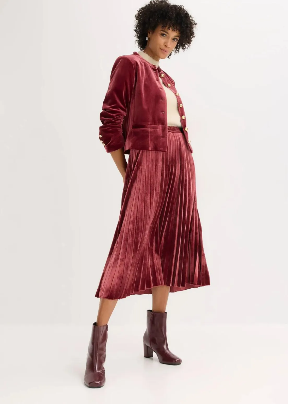 langer Plissée-Rock in Samtoptik