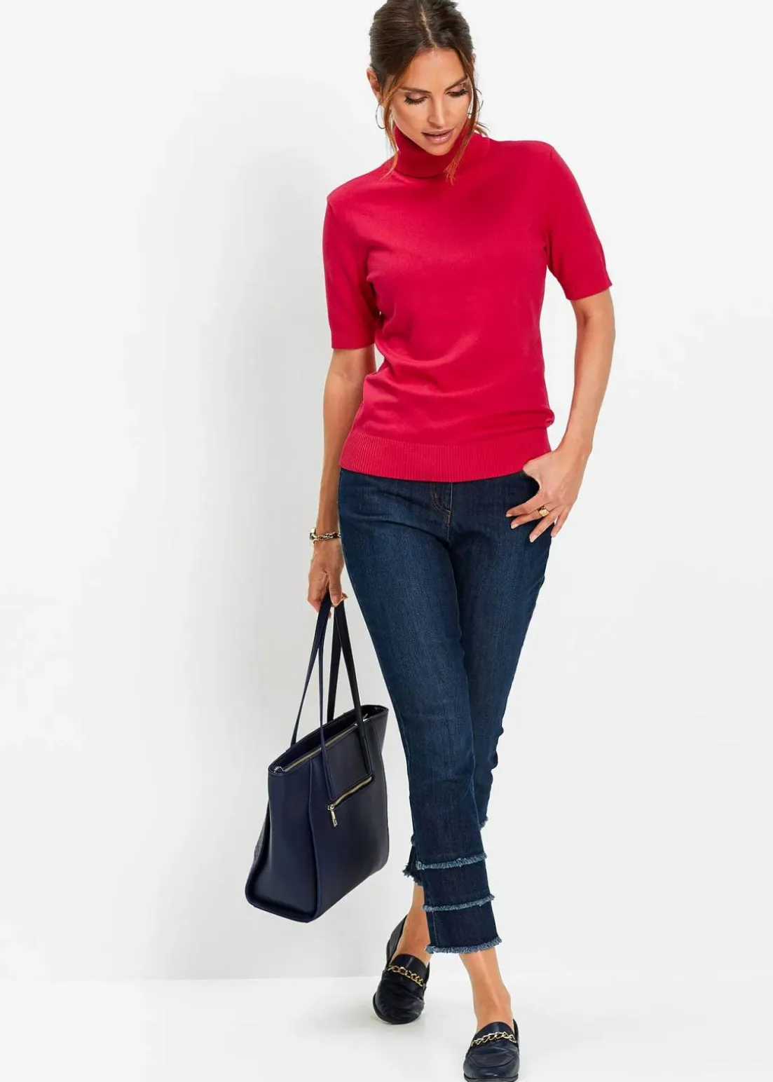 Klassischer Kurzarm-Pullover mit Rollkragen