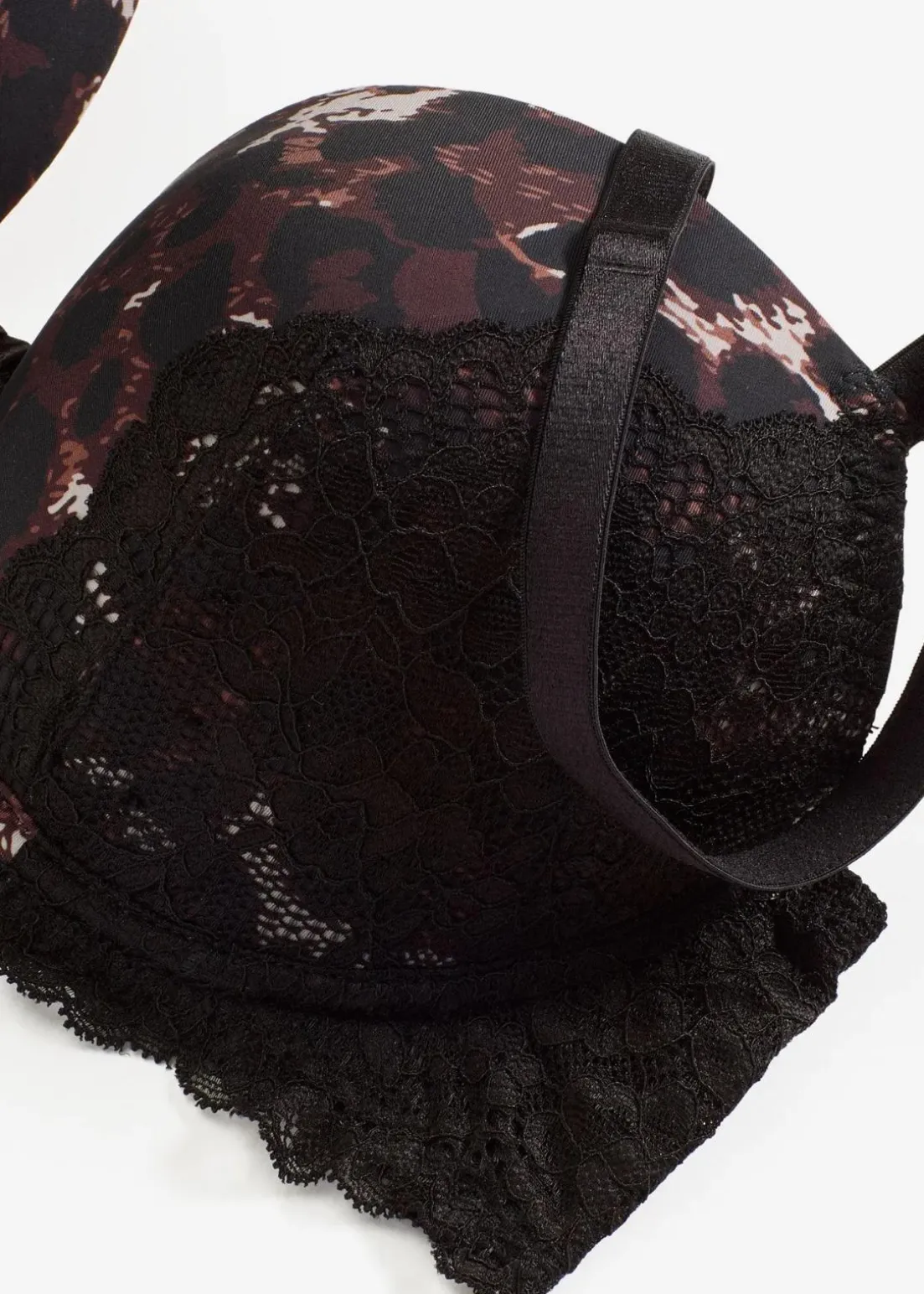Push-Up-BH mit feiner Spitze und recyceltem Polyamid.