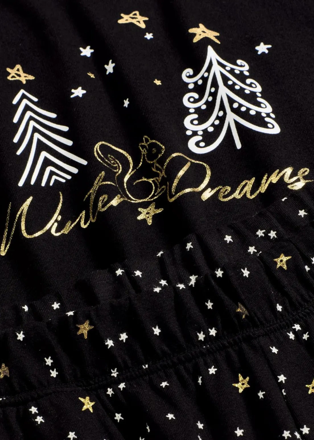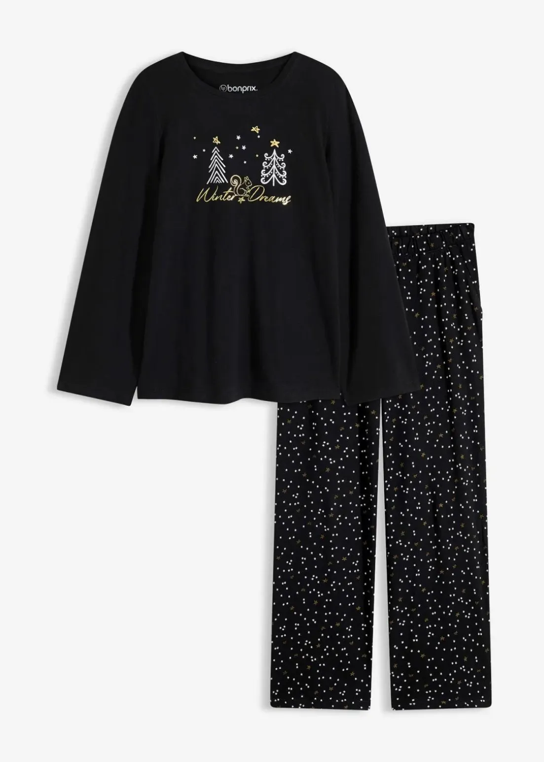 Gemütlicher Pyjama mit besonderen Glitzerdruck und Langarmshirt mit Rundhals sowie einer langen Hose mit Eingriffstaschen und weitem Bein