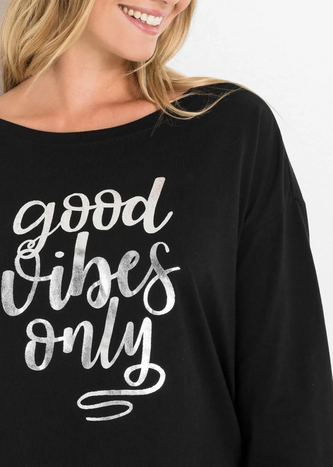Dieser komfortable Pyjama ist mit langen Ärmeln gearbeitet. Er verfügt über Ripp-Bündchen am Beinabschluss. Besonderes Highlight ist der attraktive Foliendruck.