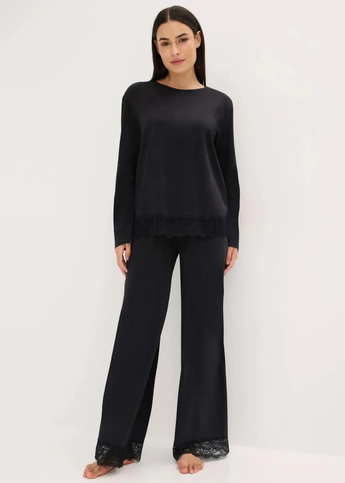 Gemütlicher Pyjama mit femininer Spitze
