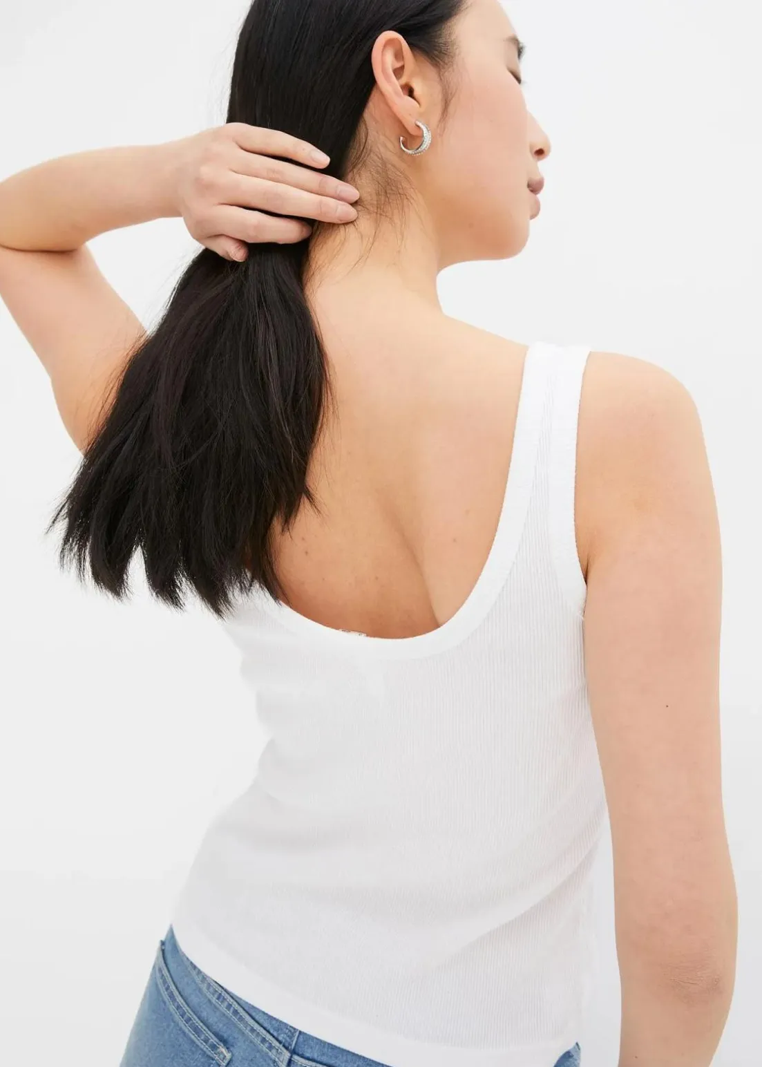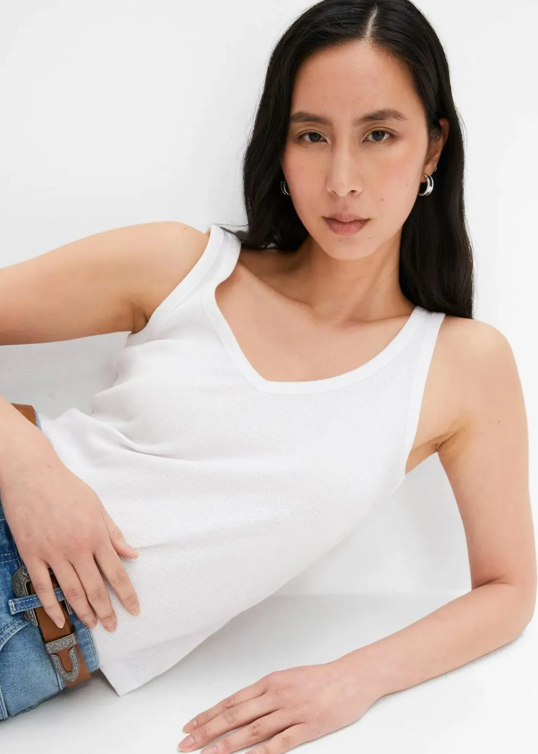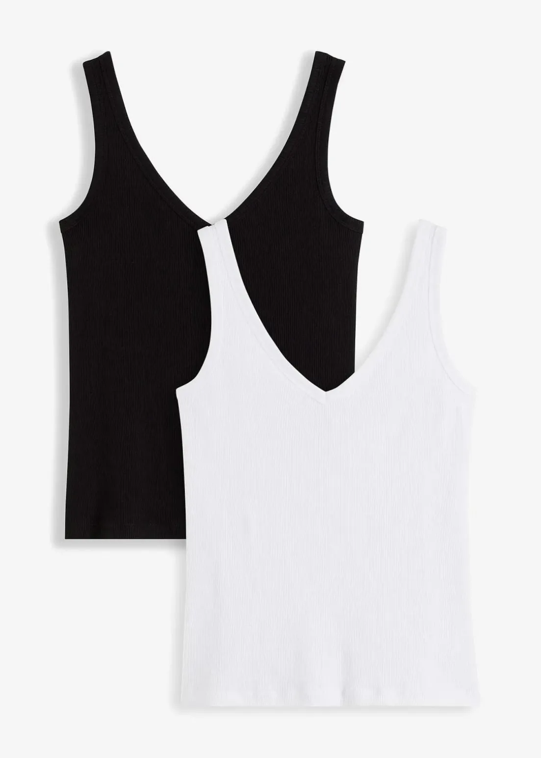 Modisches Doppelpack Ripp-Tops mit tiefem Ausschnitt aus reiner Bio-Baumwolle
