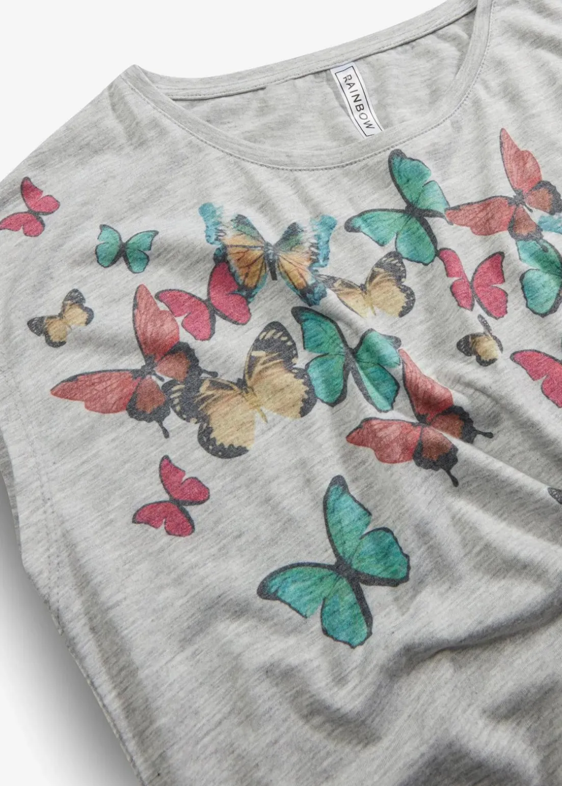 Angesagtes Print-Shirt mit Schmetterlingen und Flügelärmeln