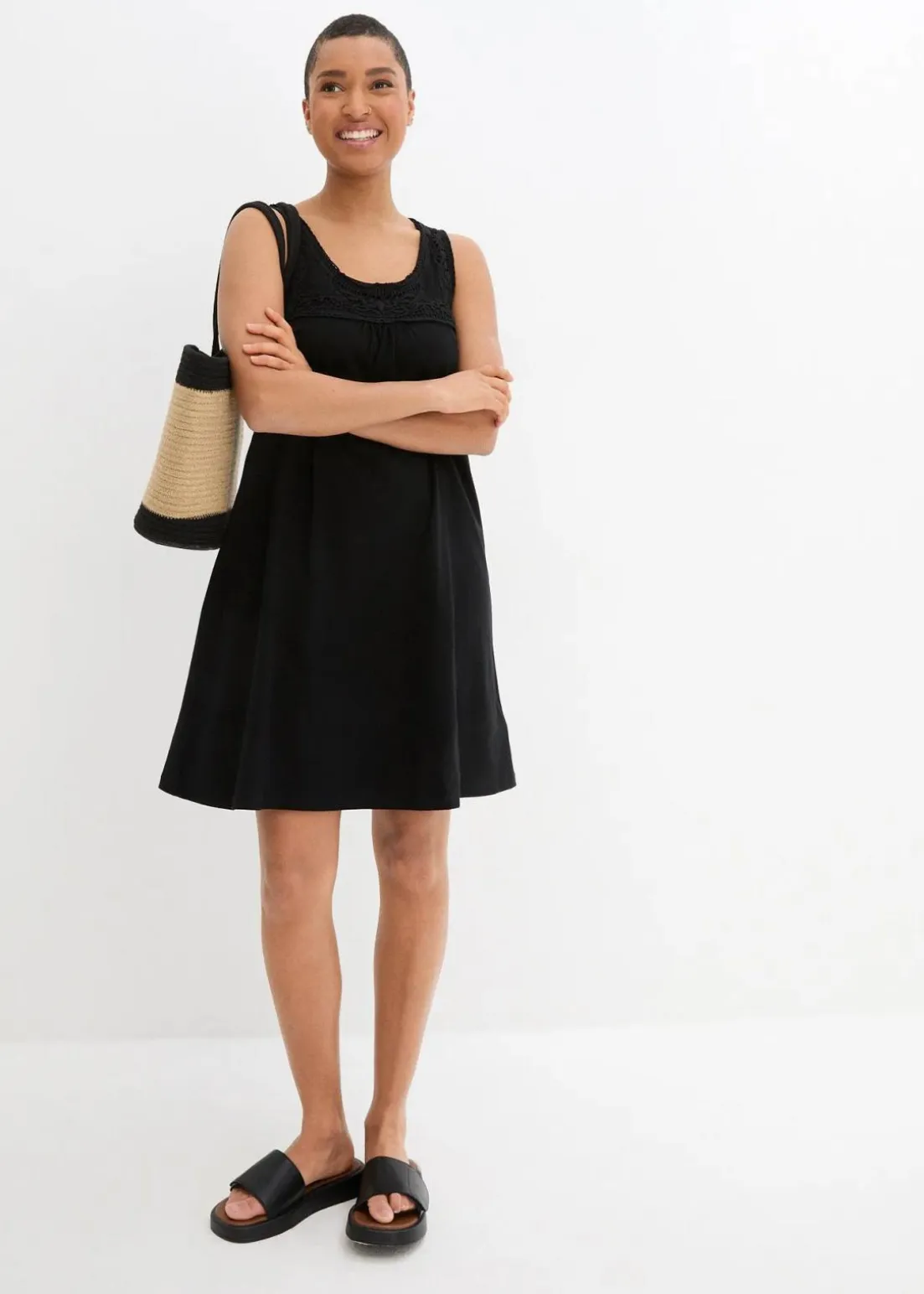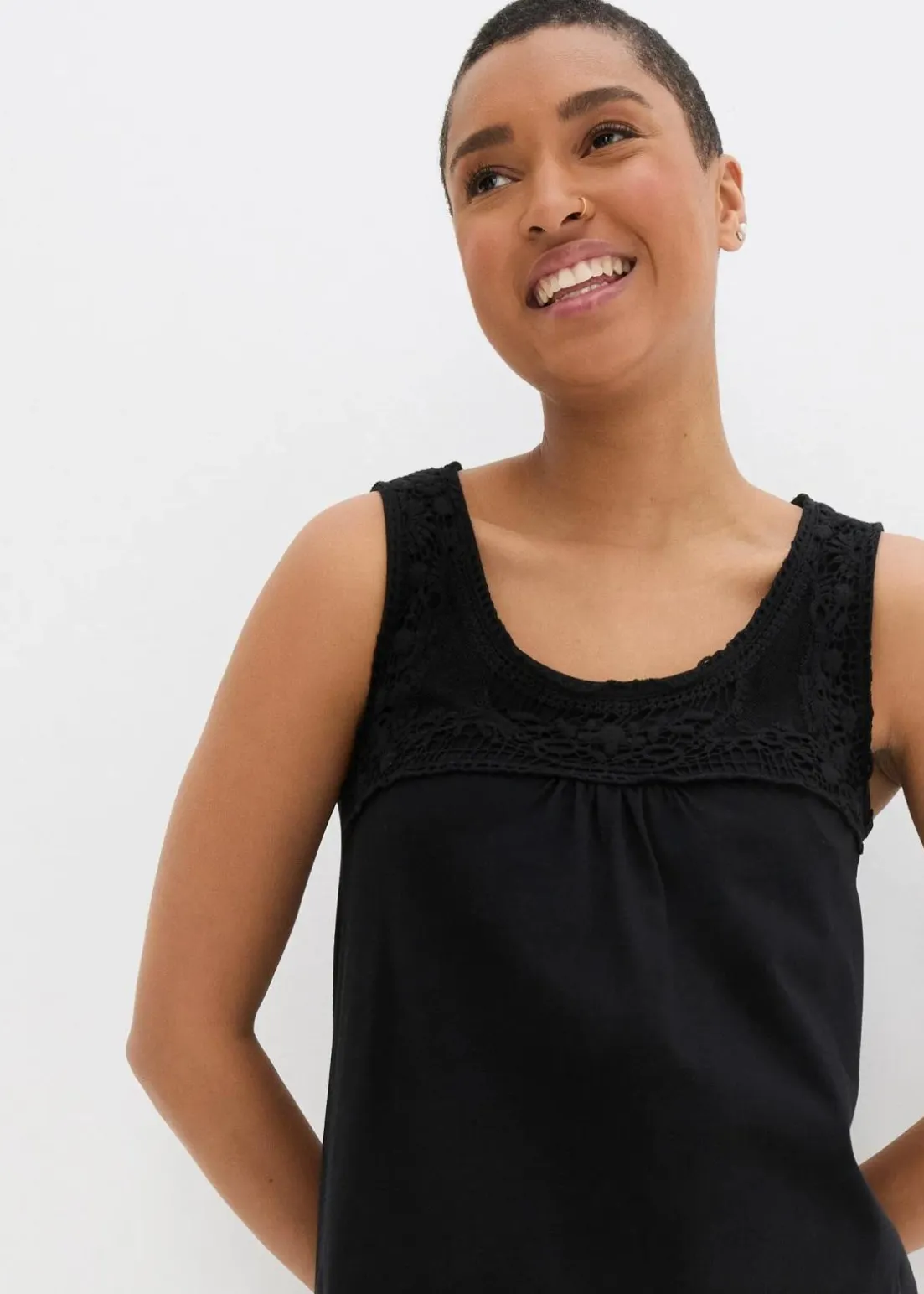Figurumspielendes Shirtkleid mit hübschem Spitzeneinsatz ohne Ärmel aus Bio-Baumwolle