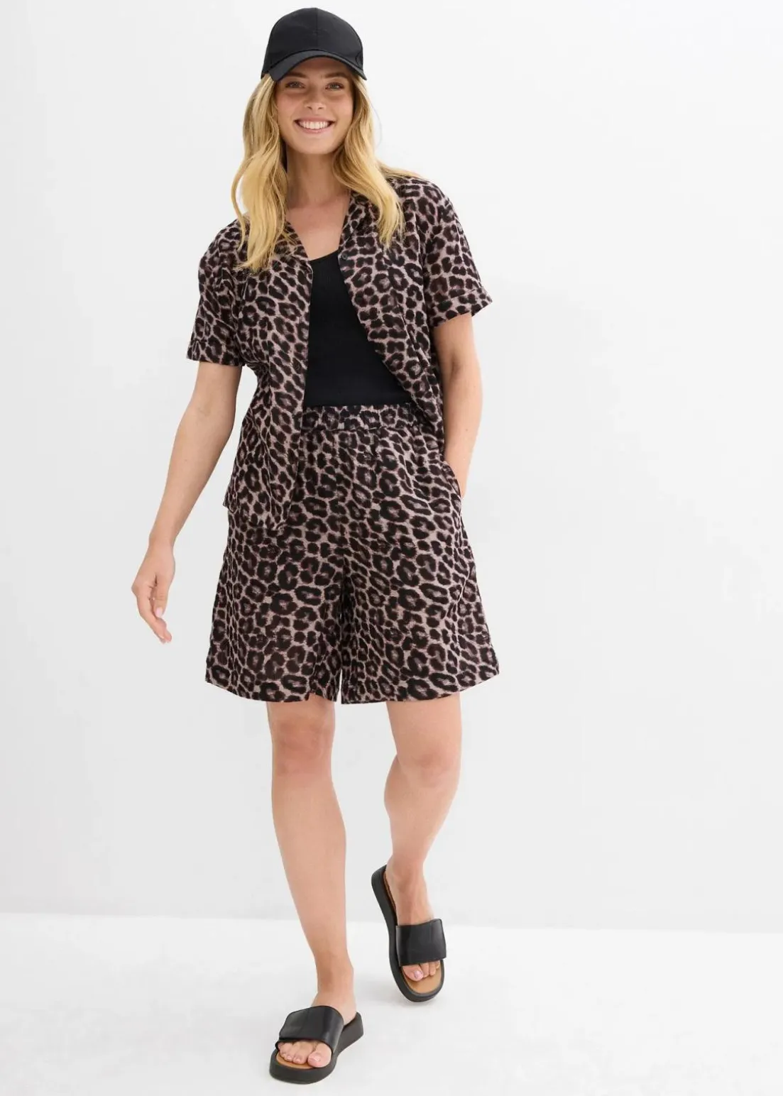 Shorts mit hoch geschnittenem, elastischem Bund und seitlichen Eingriffstaschen. Weite Passform.