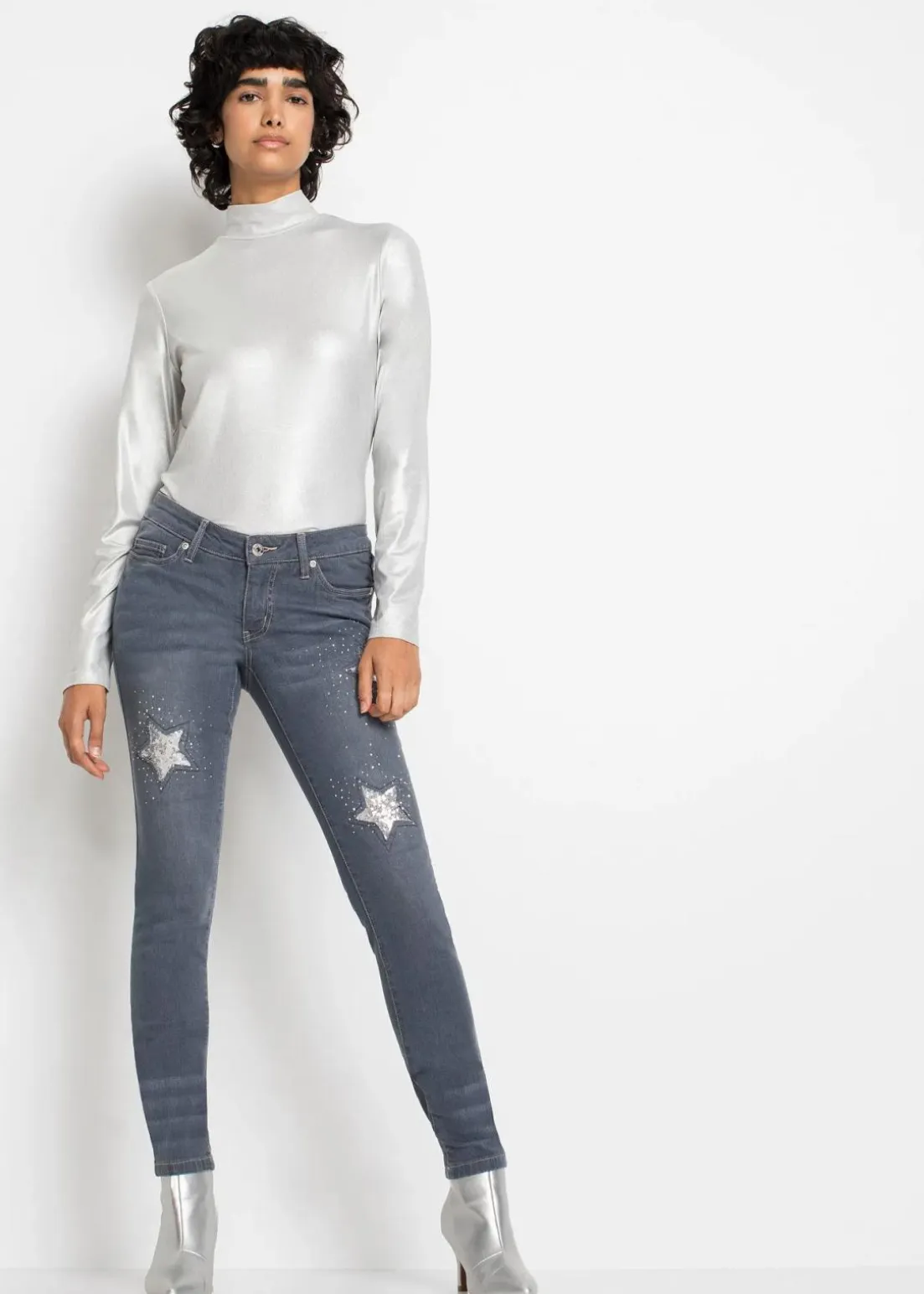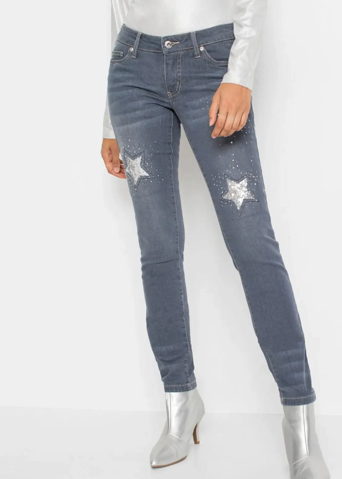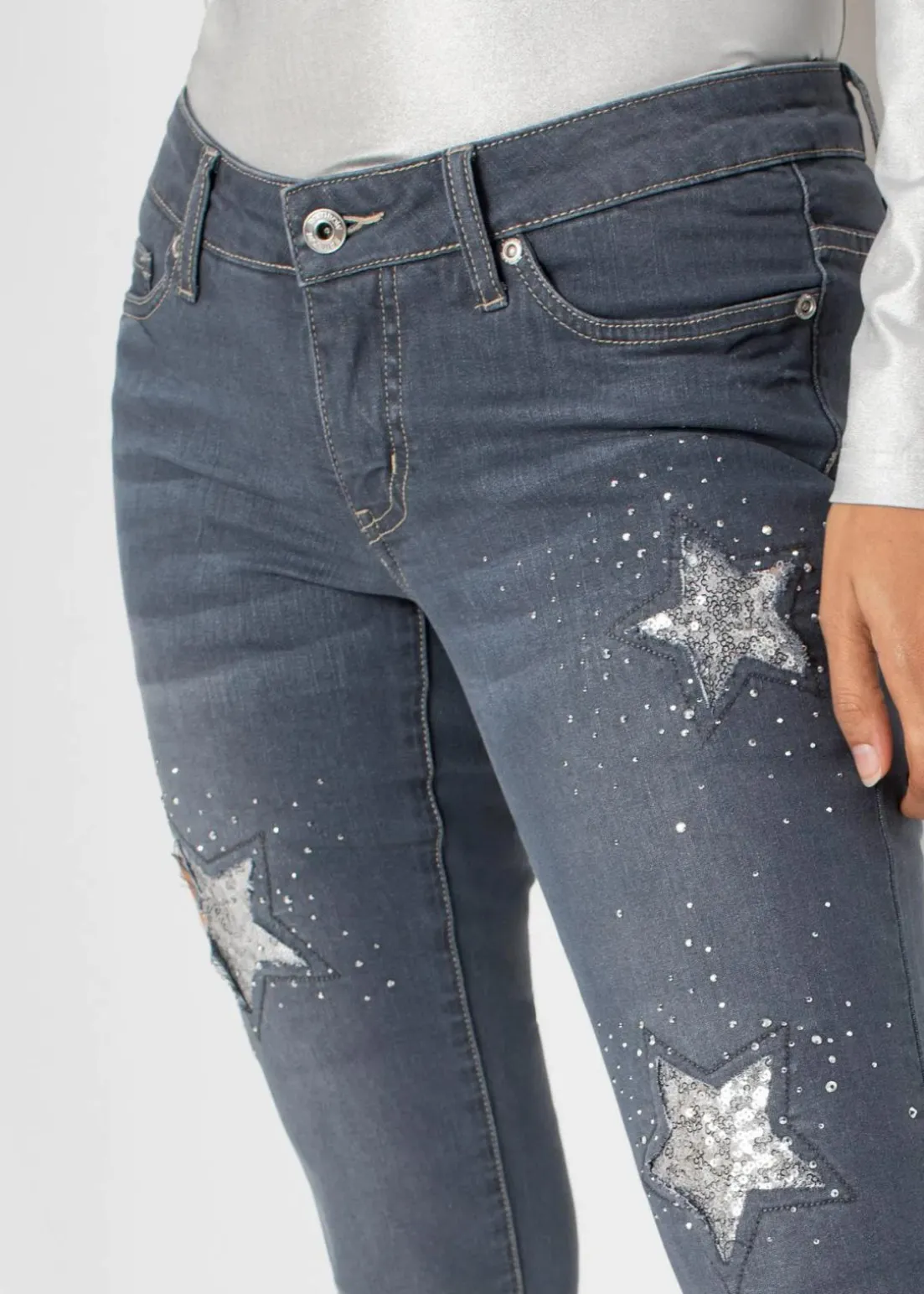 Trendy Skinny-Jeans mit Pailletten und Sternen-Details