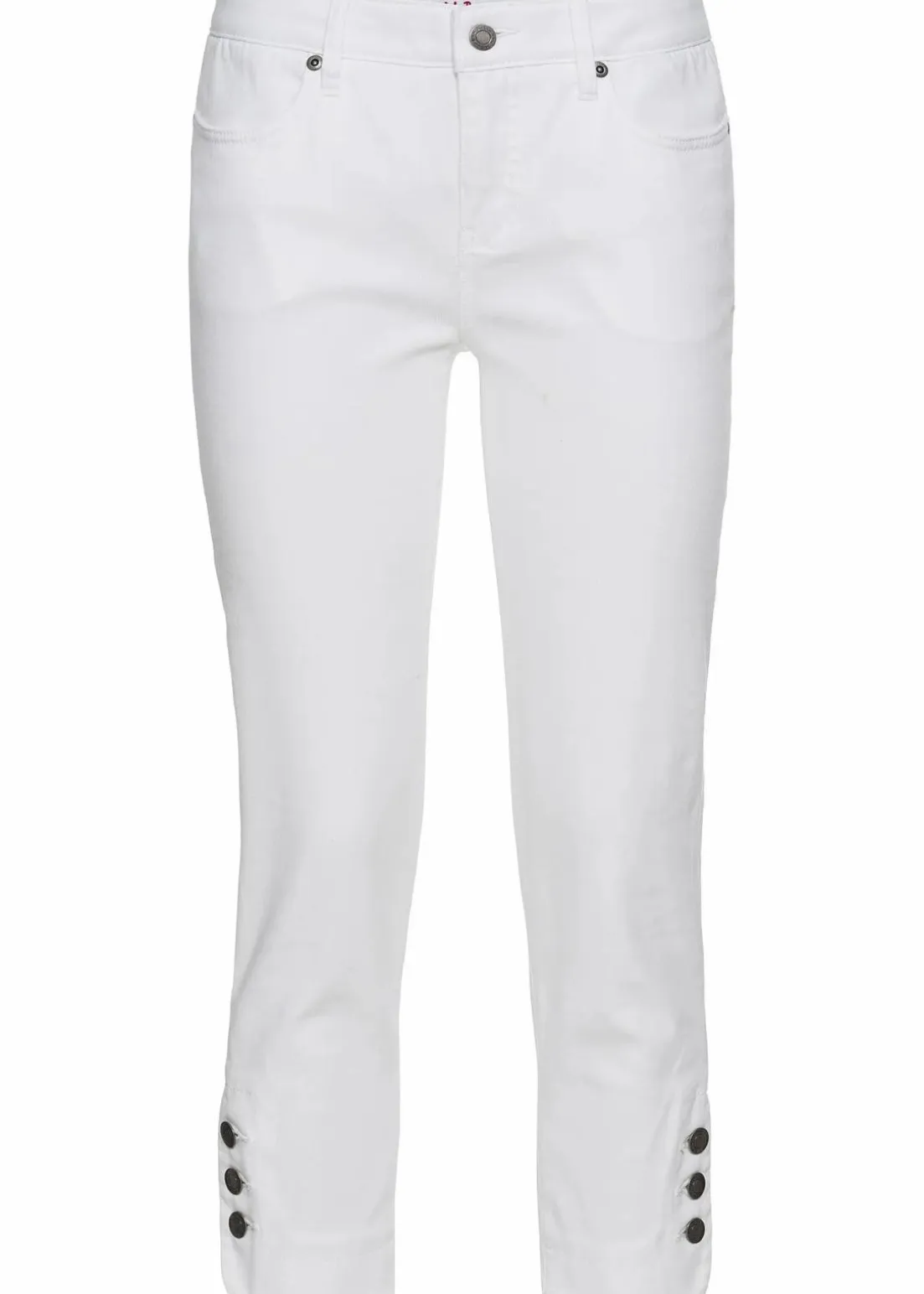 In dieser bequemen Stretch-Jeans in 3/4-Länge machen lässige Damen eine gute Figur. Die Slim Fit Jeans aus der aktuellen Kollektion von John Baner ist im 4-Pocket-Look geschnitten und wird mit Knopf und Reißverschluss geschlossen.Die raffiniert geknöpften Seitenschlitze und die sehr figurbetonte Passform unterstreichen den modischen Stil der Stretch-Jeans SLIM mit Knöpfen.