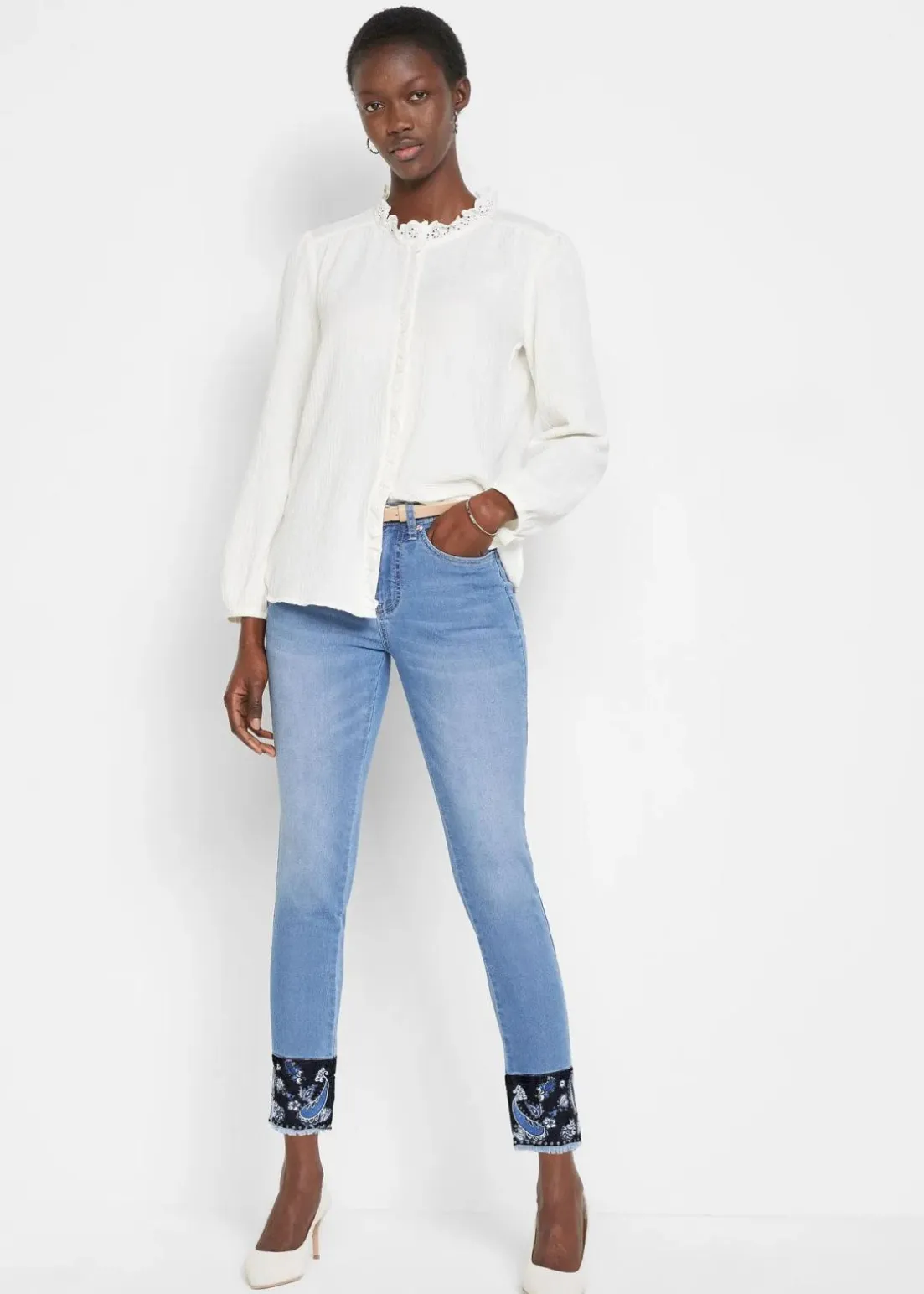 Slim-Fit-Jeans mit Stickerei