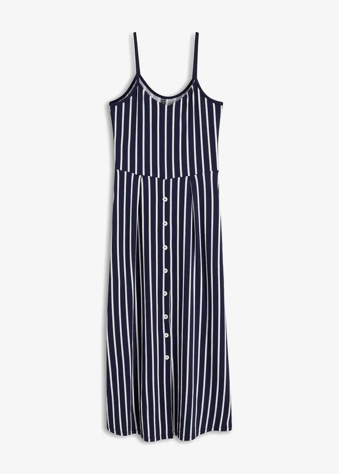 Kleid im eleganten Stil, mit Spaghetti-Trägern. Ab Taille mittig mit einer kleinen Knopfleiste bis zum Saum versehen
