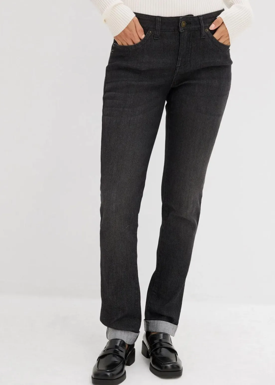 Diese Stretch Jeans Straight aus der Kollektion von John Baner hat das Potenzial zur absoluten Lieblingshose. Gerader Schnitt, lässige Used-Optik – so wird jeder Look zum Hingucker.Beim Kombinieren ist diese Hose vielseitig. Zu locker geschnittenen Blusen und Hemden, hübschen Tuniken und einfachen Basic-Shirts passt sie perfekt. Boots, Sneakers oder Ballerinas dazu – schon ist das Freizeitoutfit komplett.Referenzgröße für Längenangabe: Gr. 42