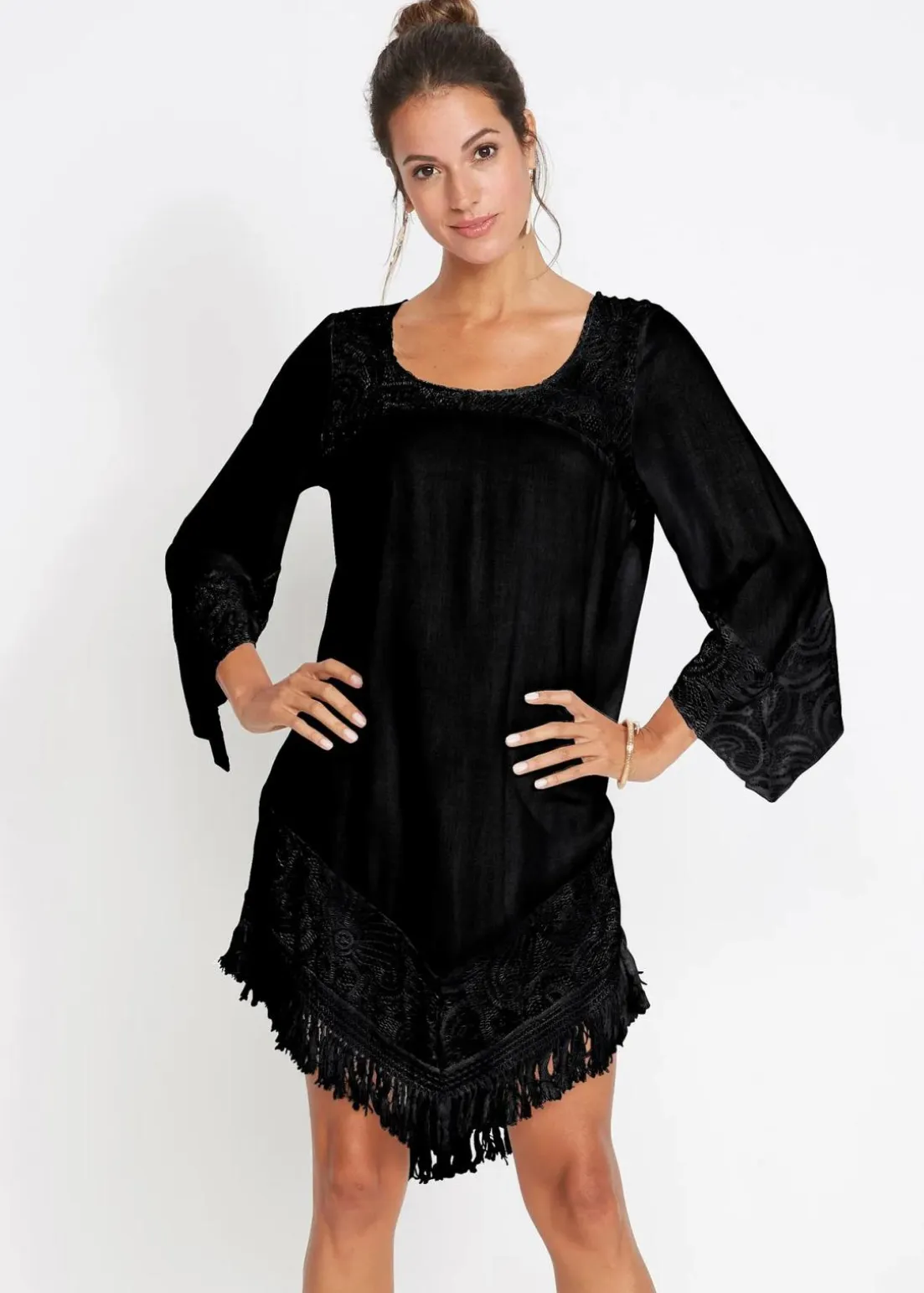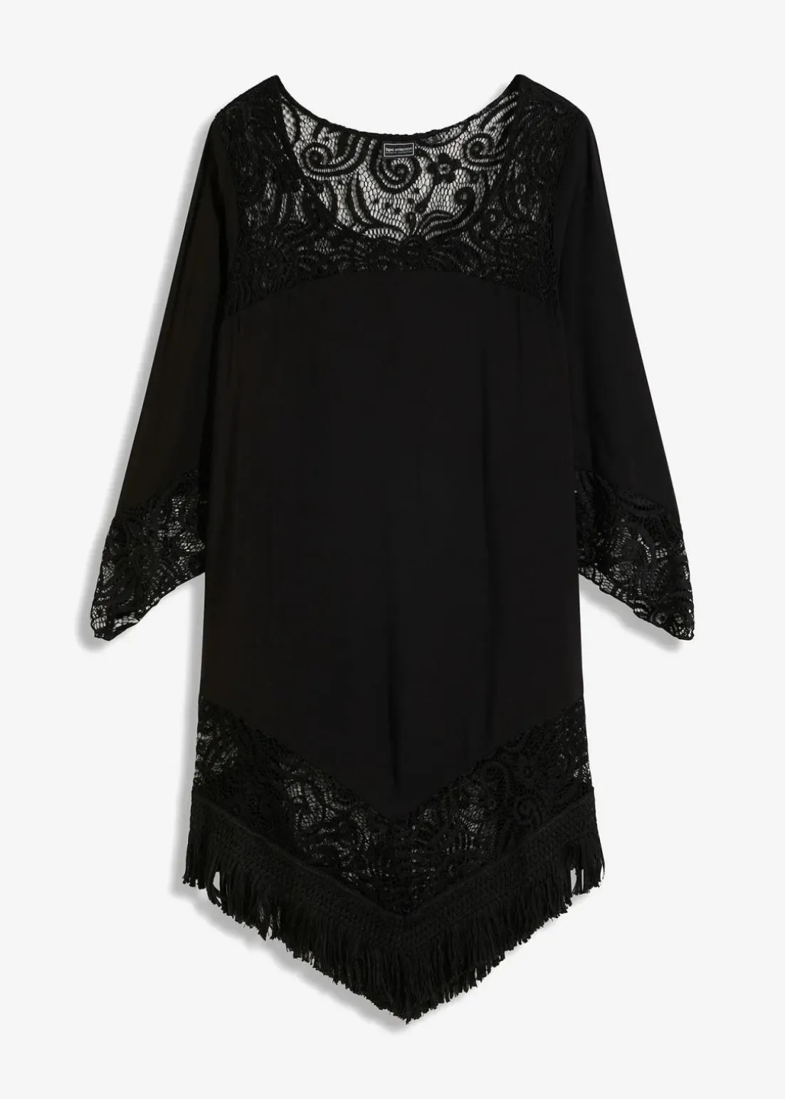 Die leicht transparente Strandtunika der Marke bpc selection bezaubert mit feiner Spitze und attraktivem Design. Die gehäkelten Spitzeneinsätze an Halsausschnitt, Saum und Ärmeln verleihen der Tunika einen eleganten Chic und lassen die sonnengebräunte Haut hindurchscheinen. Der schräg geschnittene Saum mit dekorativen Fransen unterstreicht den femininen Look. Für den Strand lässt sich die Tunika ideal mit eleganter Bademode kombinieren.