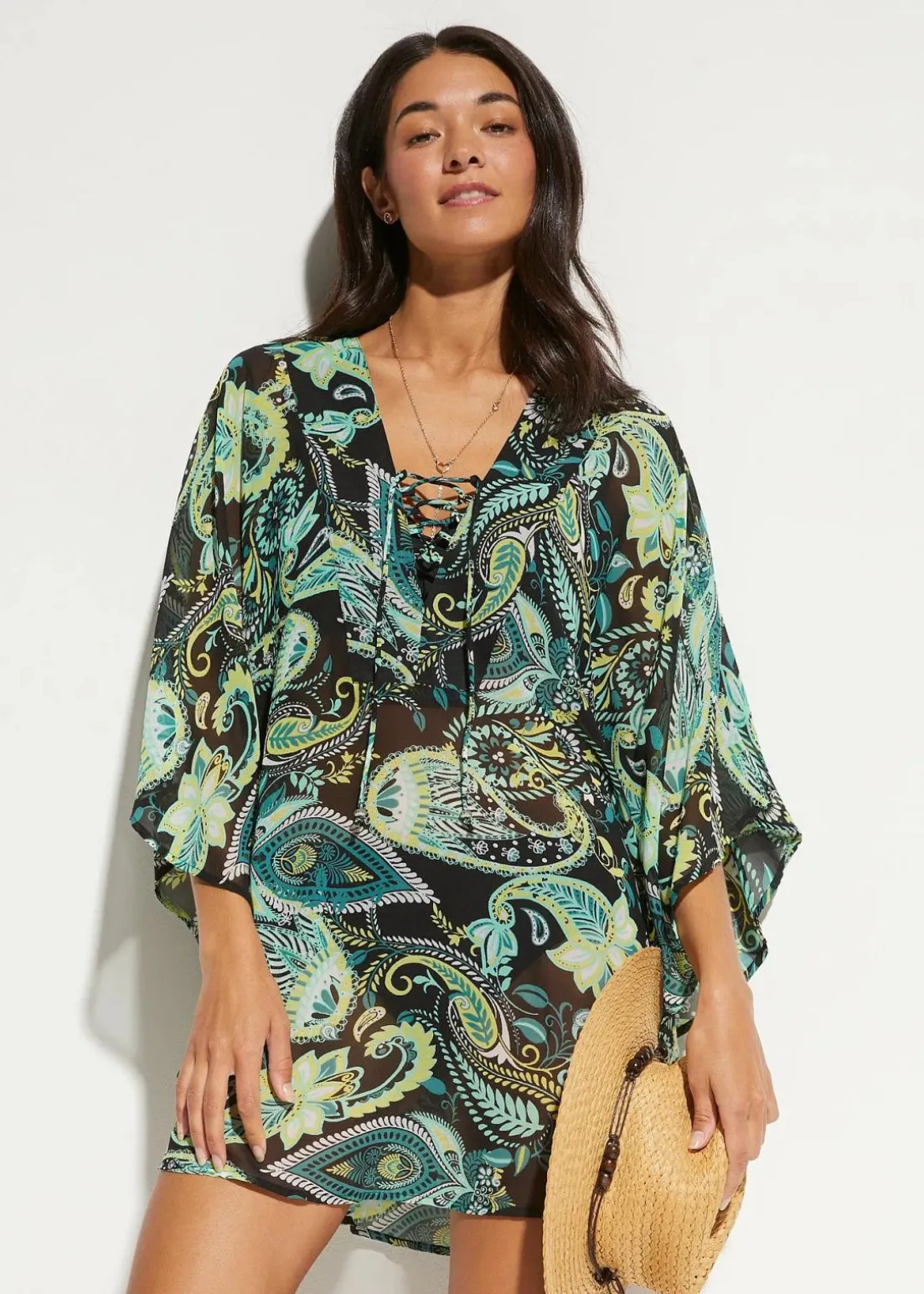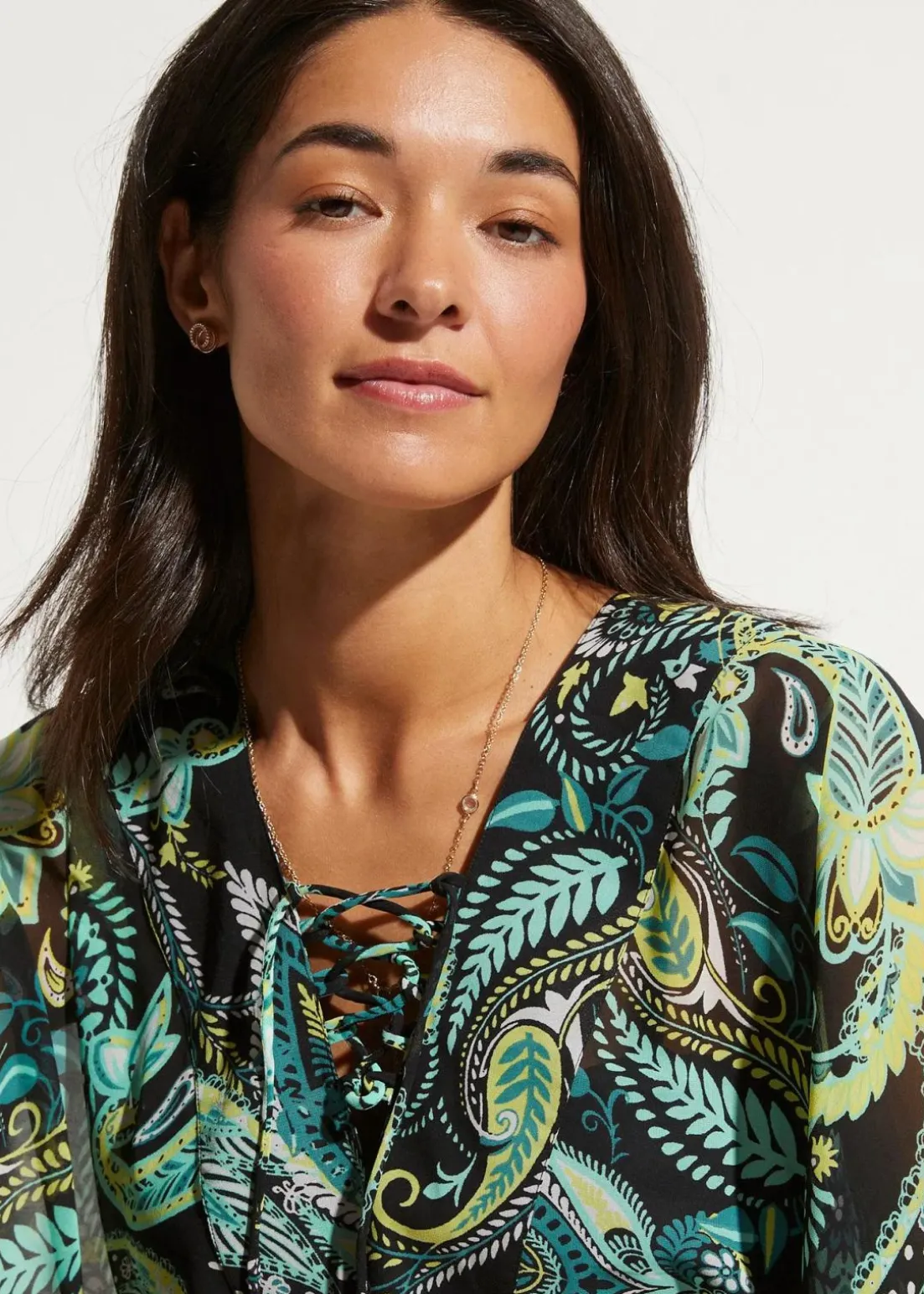 Trendige, transparente Tunika mit Schnürung am Ausschnitt