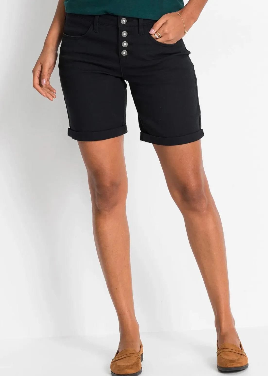 Sommerliche Stretch-Bermuda mit attraktiver Knopfleiste.