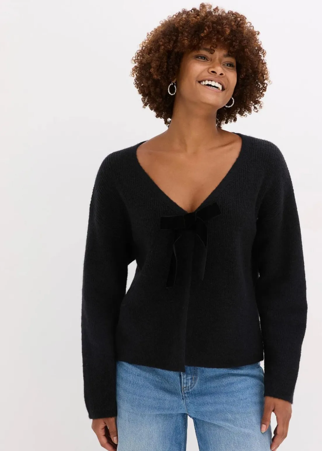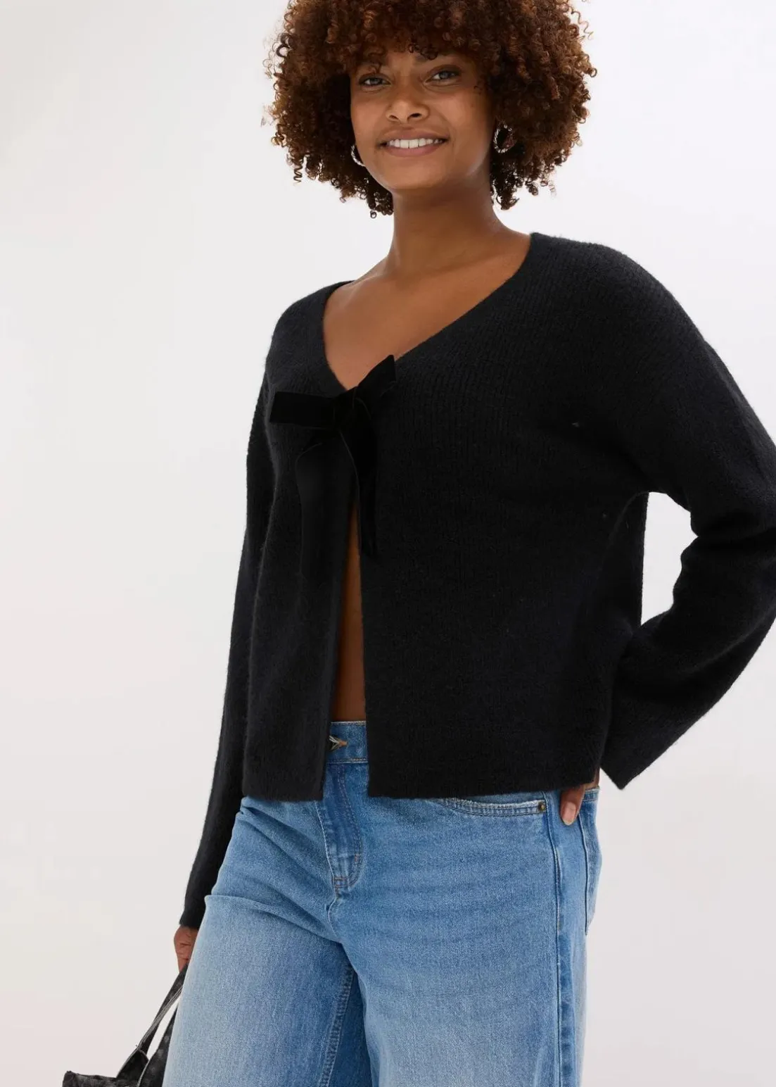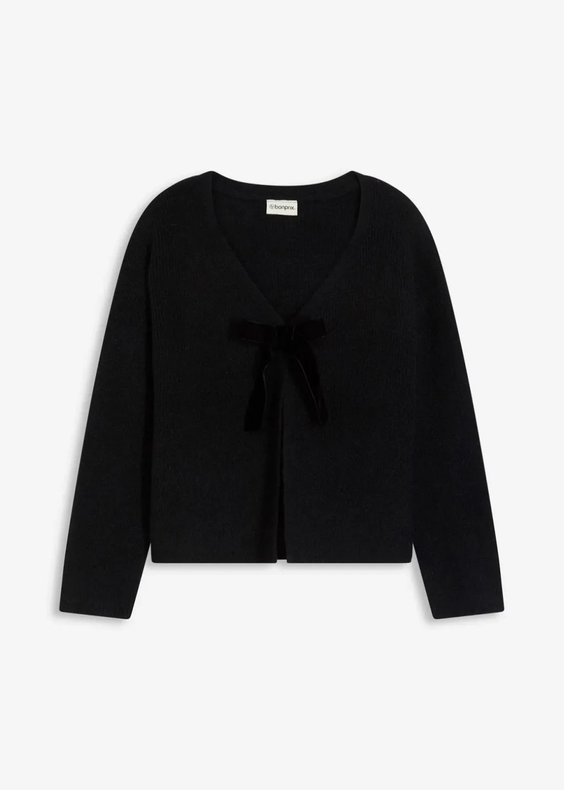 Moderne geschlossene Strickjacke mit dekorativer Schleife