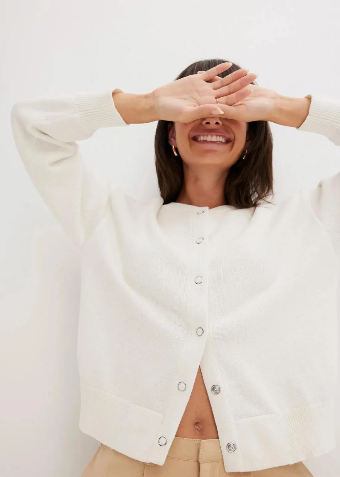 Leger geschnittener Strick-Blouson mit Druckknöpfen
