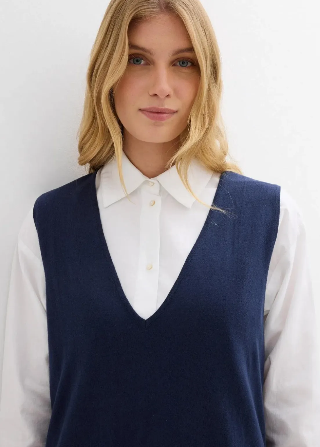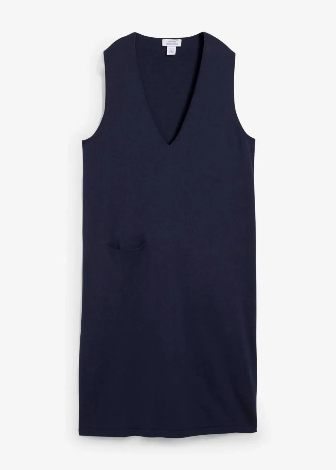 Ärmelloses Maxi-Strickkleid mit V-Ausschnitt aus reiner Baumwolle
