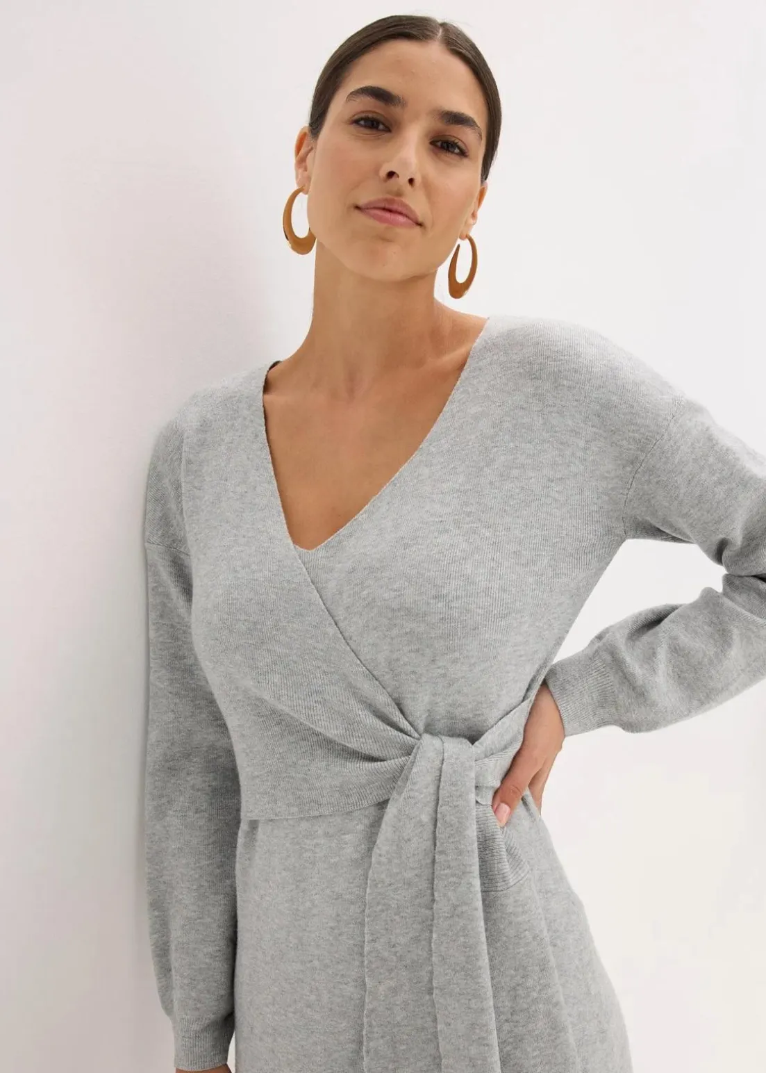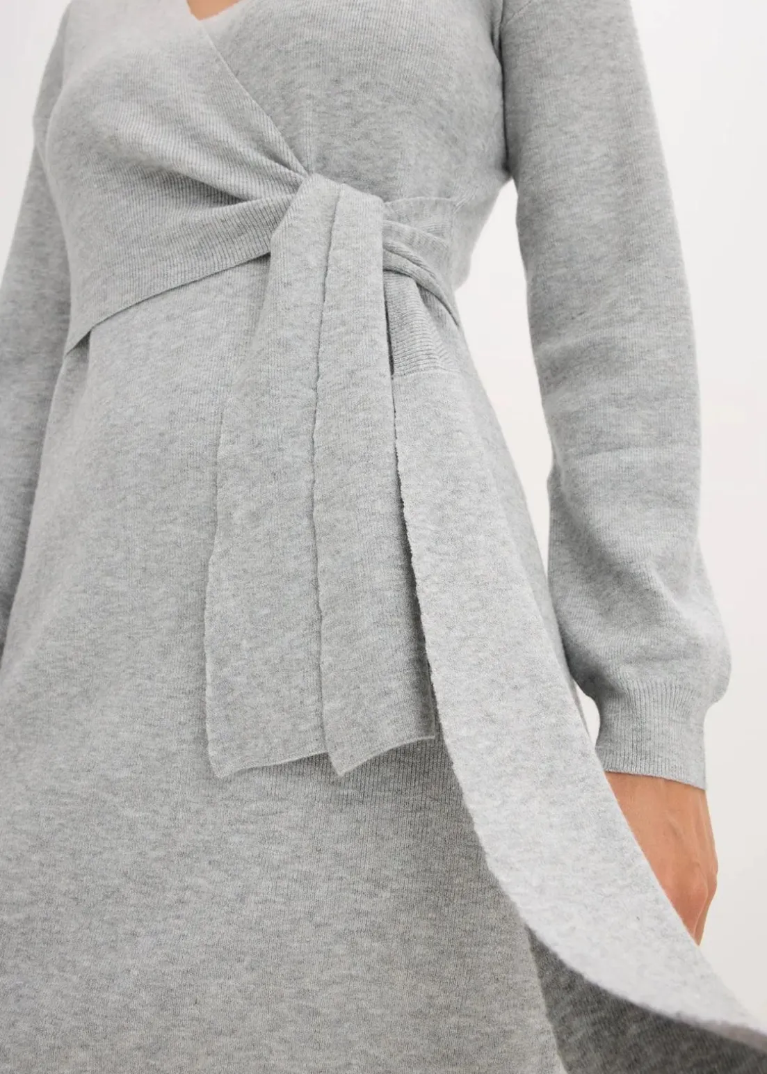 Kurzes Strickkleid in Wickeloptik mit V-Ausschnitt