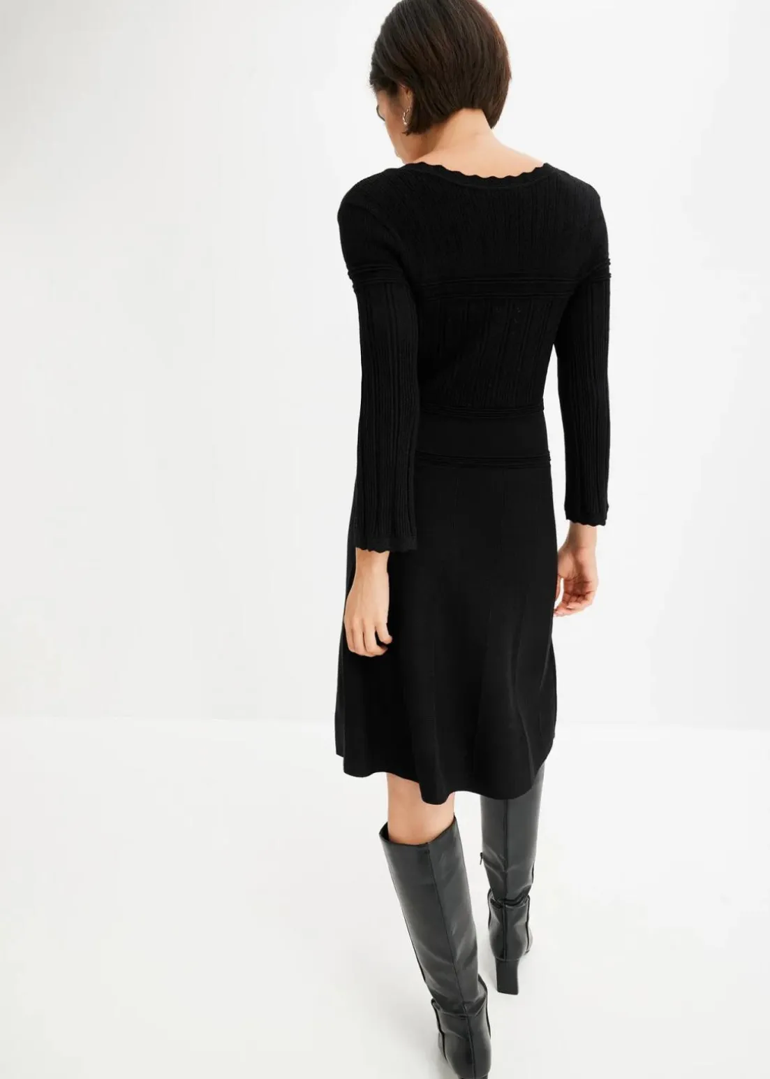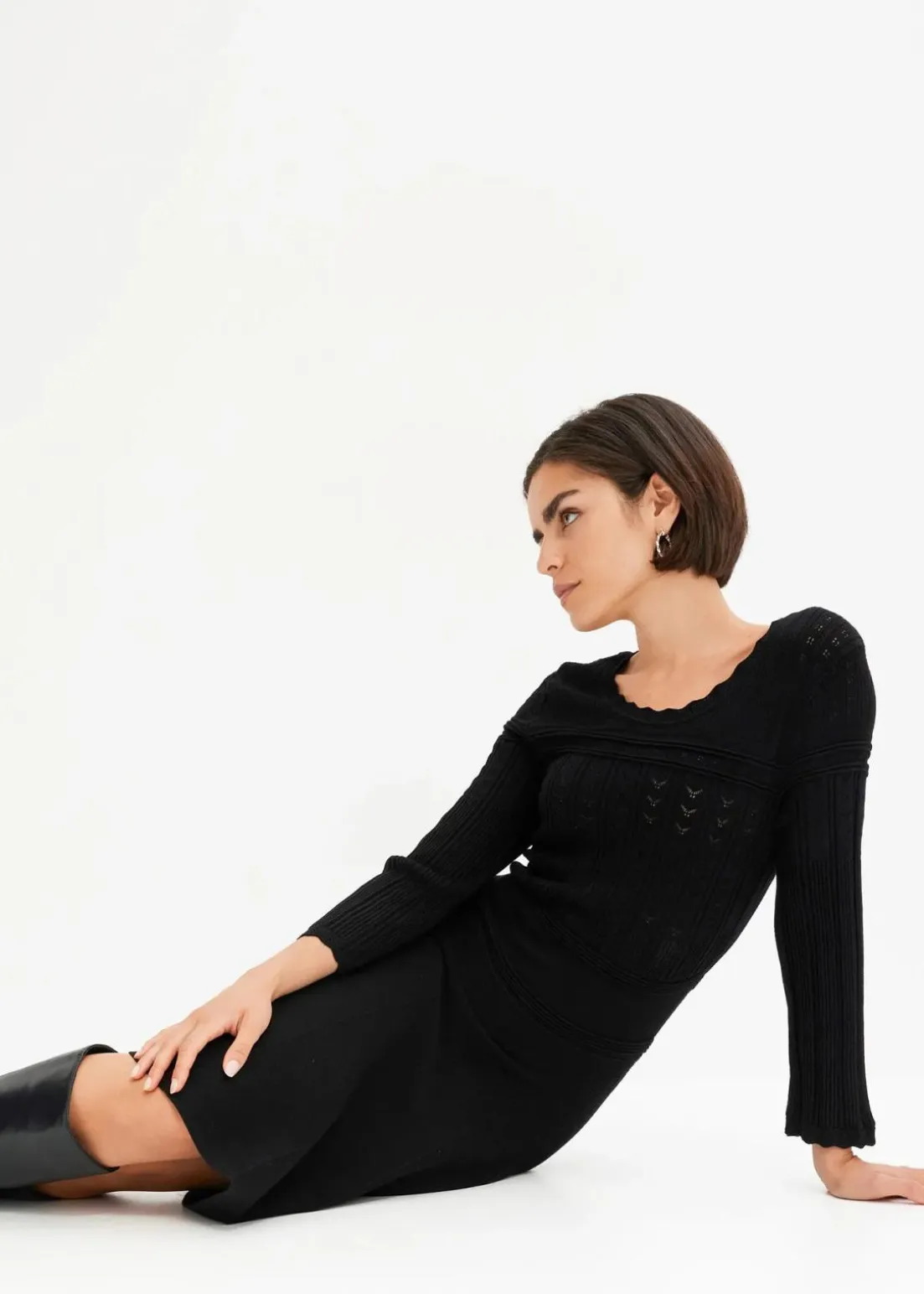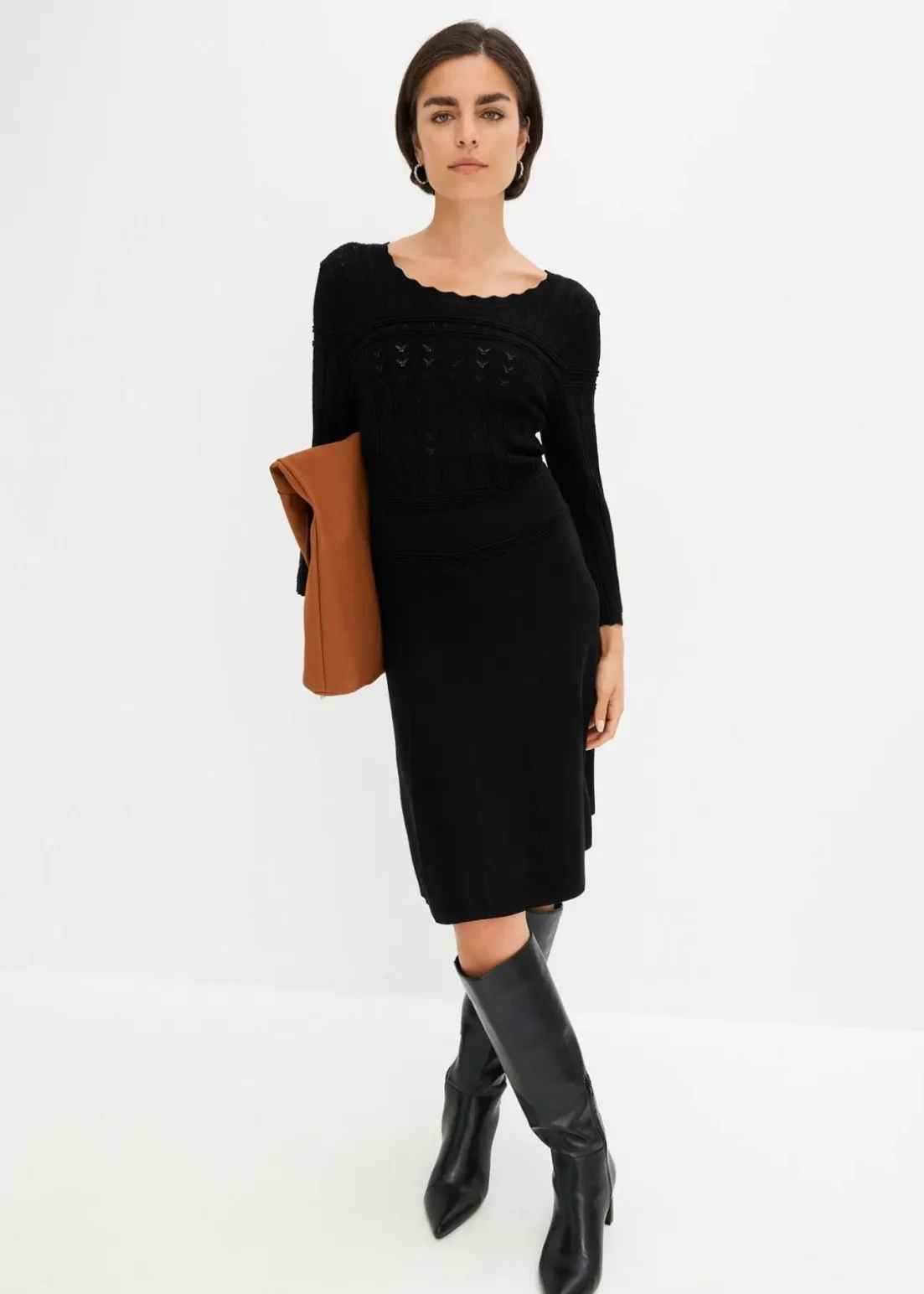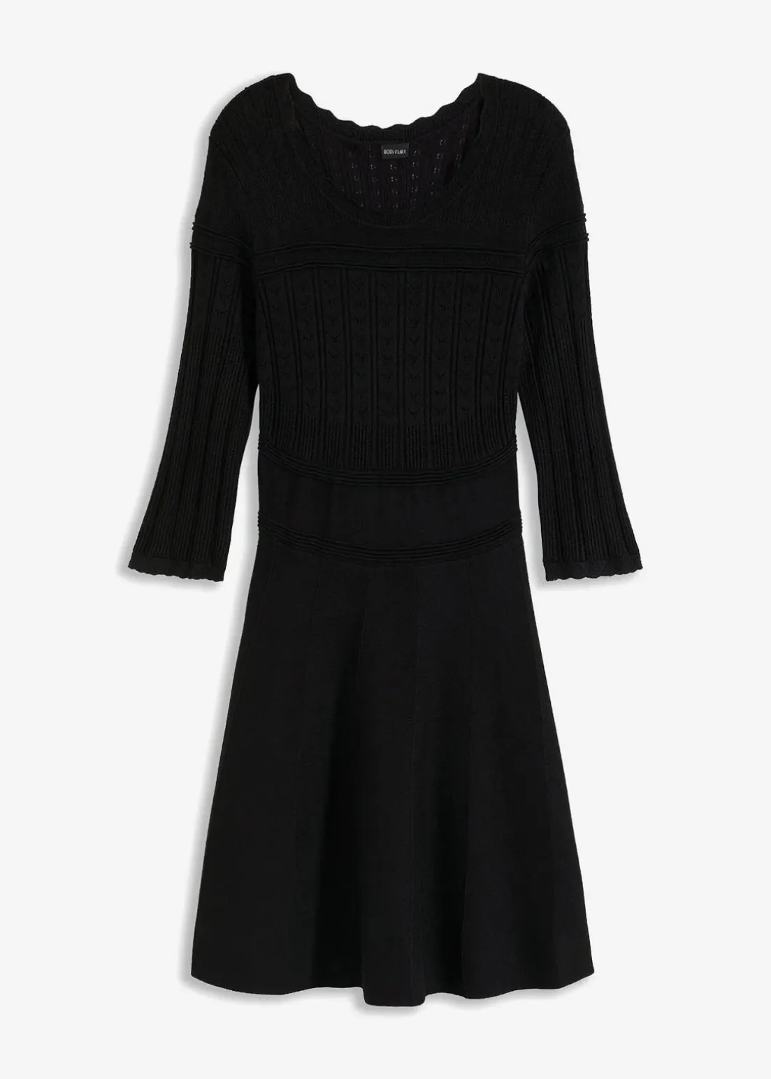 Modernes Kleid von BODYFLIRT. Das Strickkleid ist mit einem edlen Ajourmuster gefertigt. Länge in Gr. 36/38 ca. 94 cm.