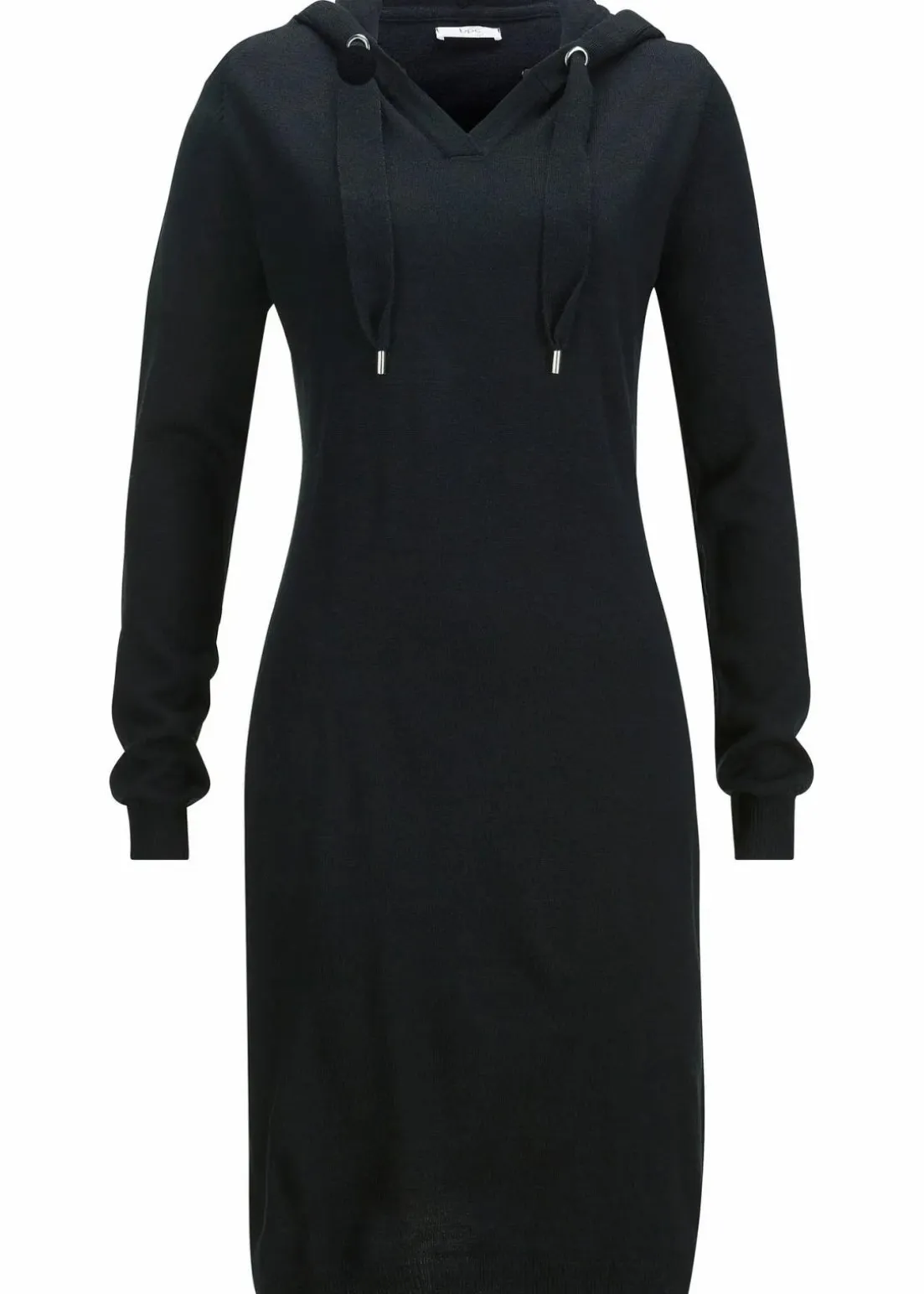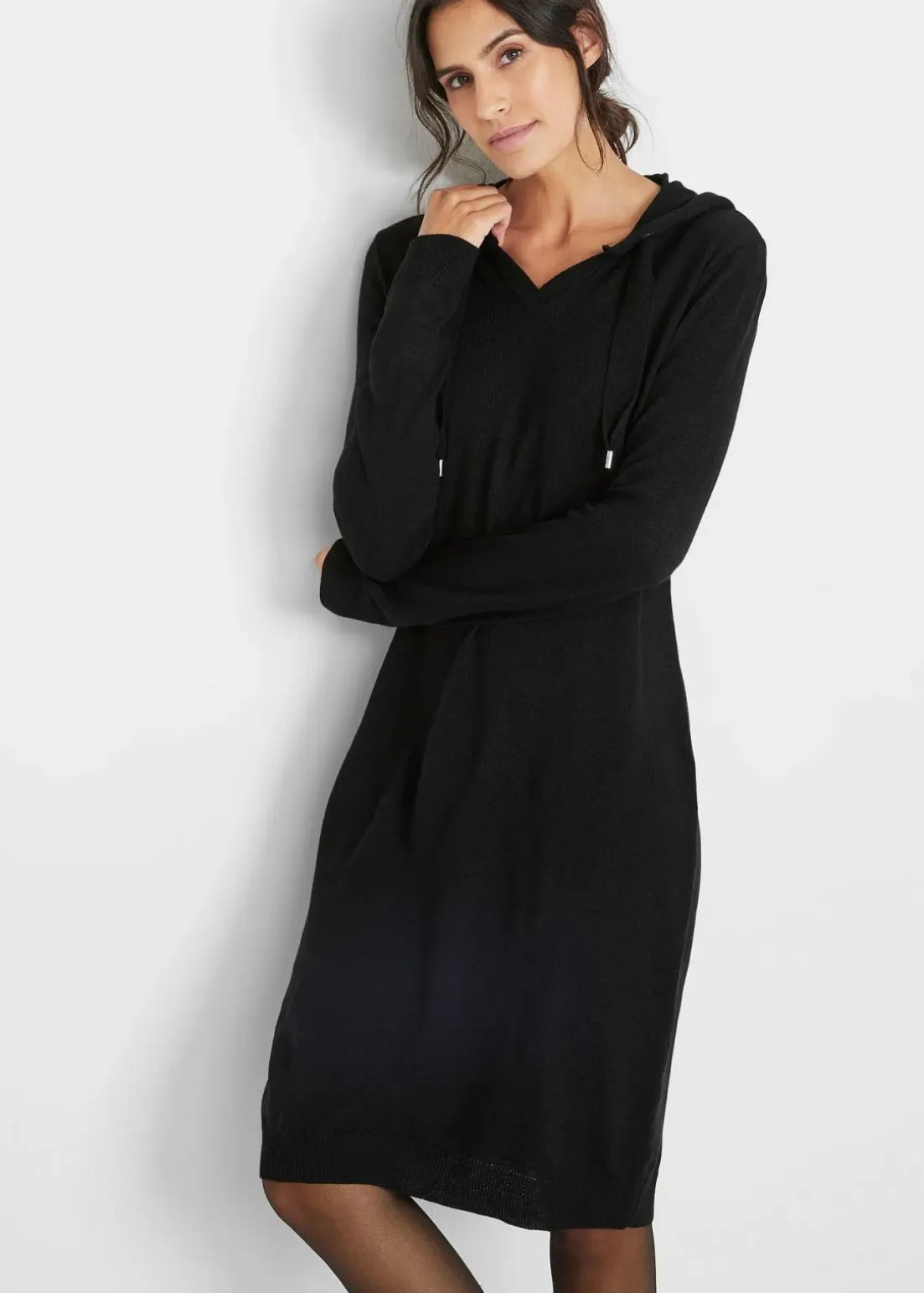 Strickkleid mit figurumspielender Passform und Kapuze